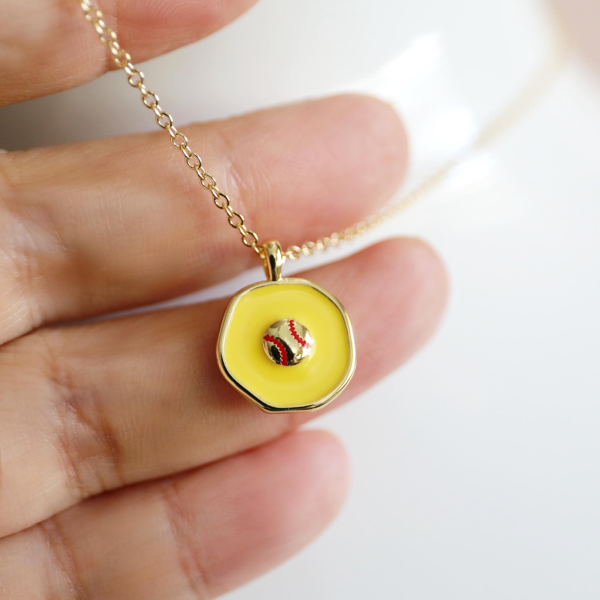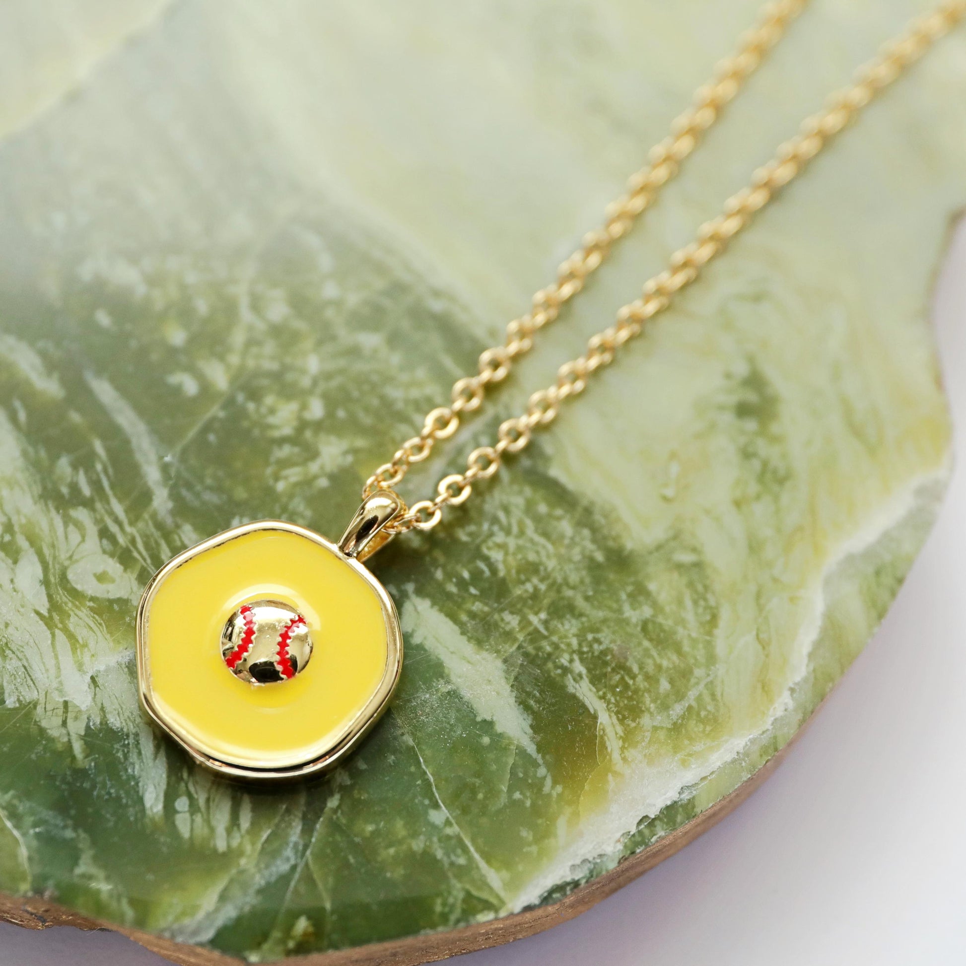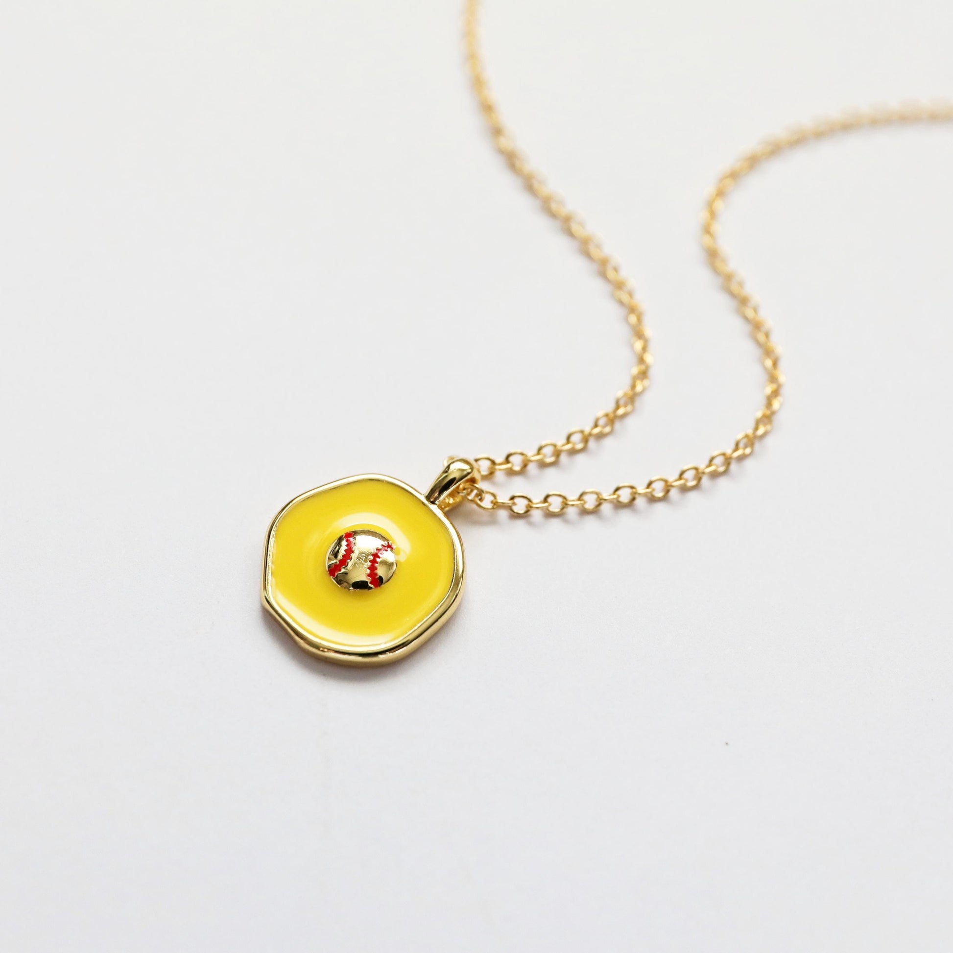 Baseball Charm Necklace, Yellow Baseball Necklace, Sports Team Gift, Birthday Gift, Sports Charm Necklace, Basketball Lover Gift