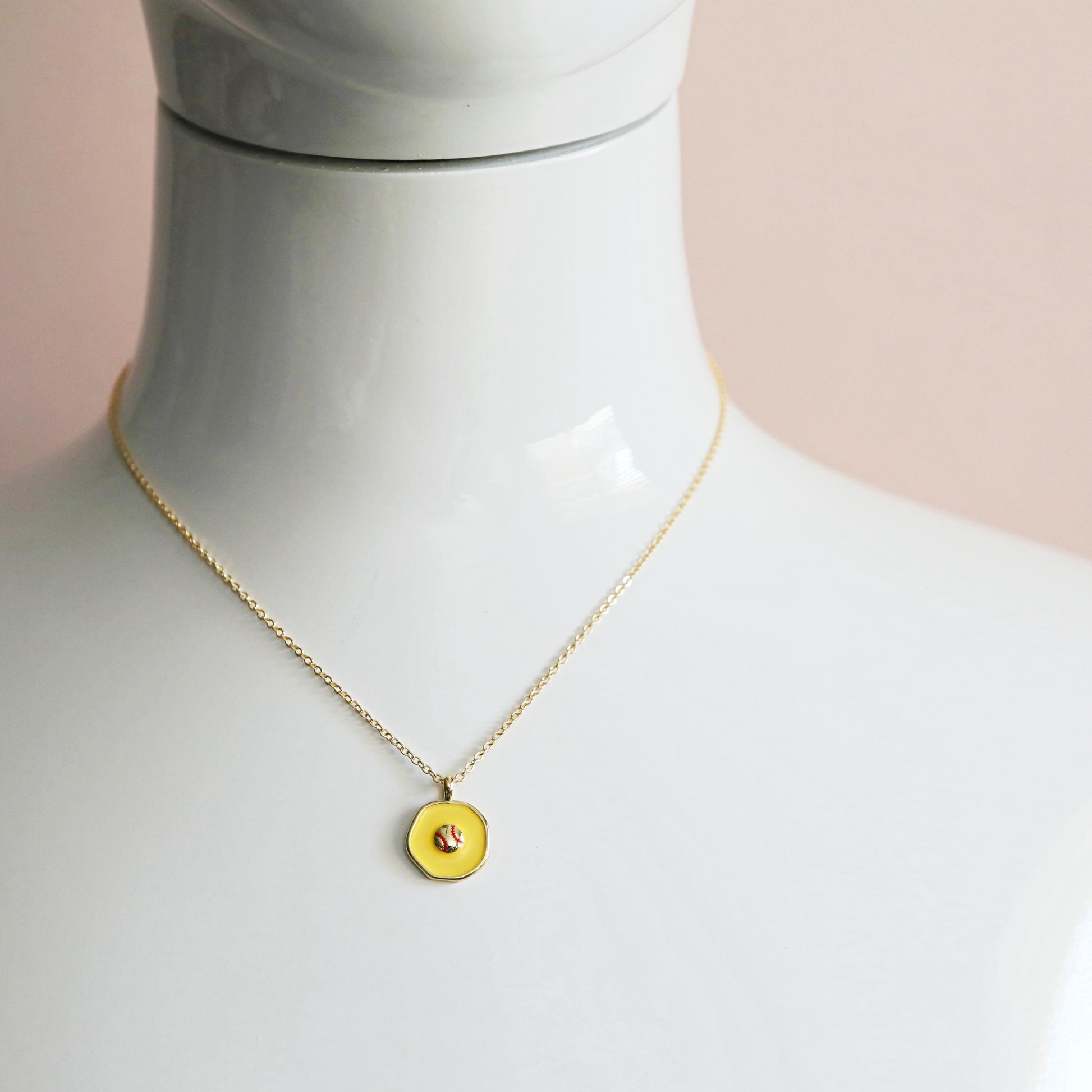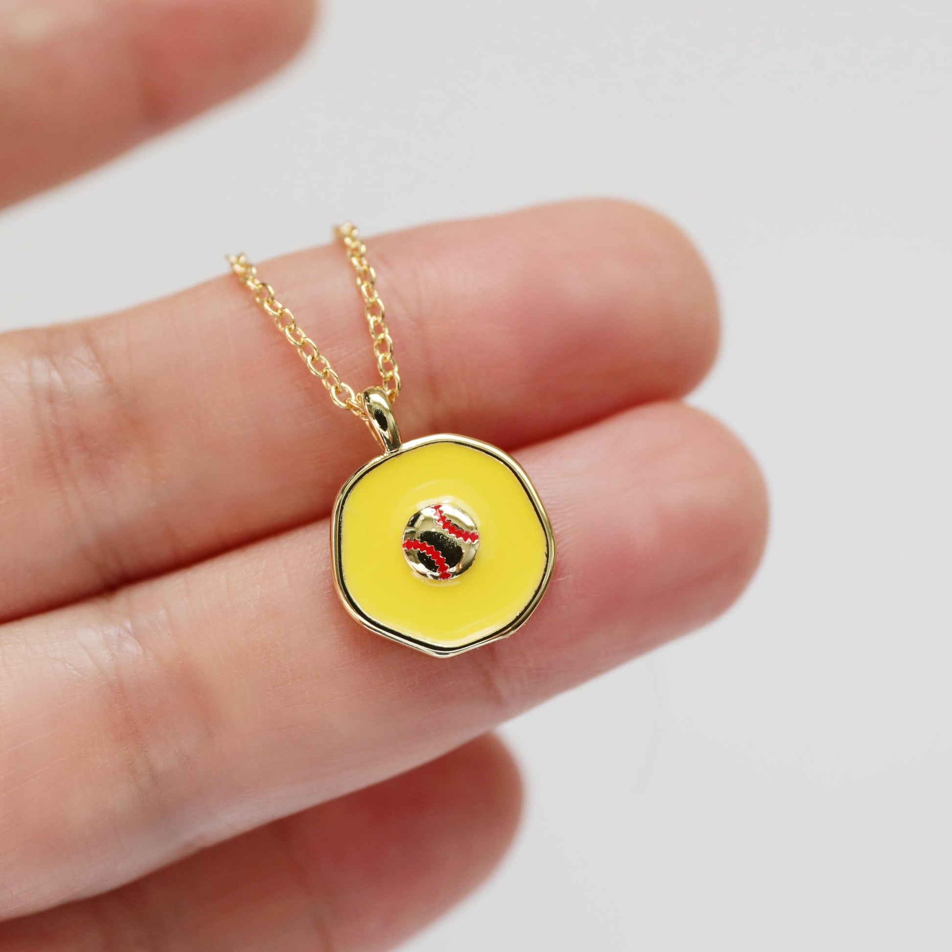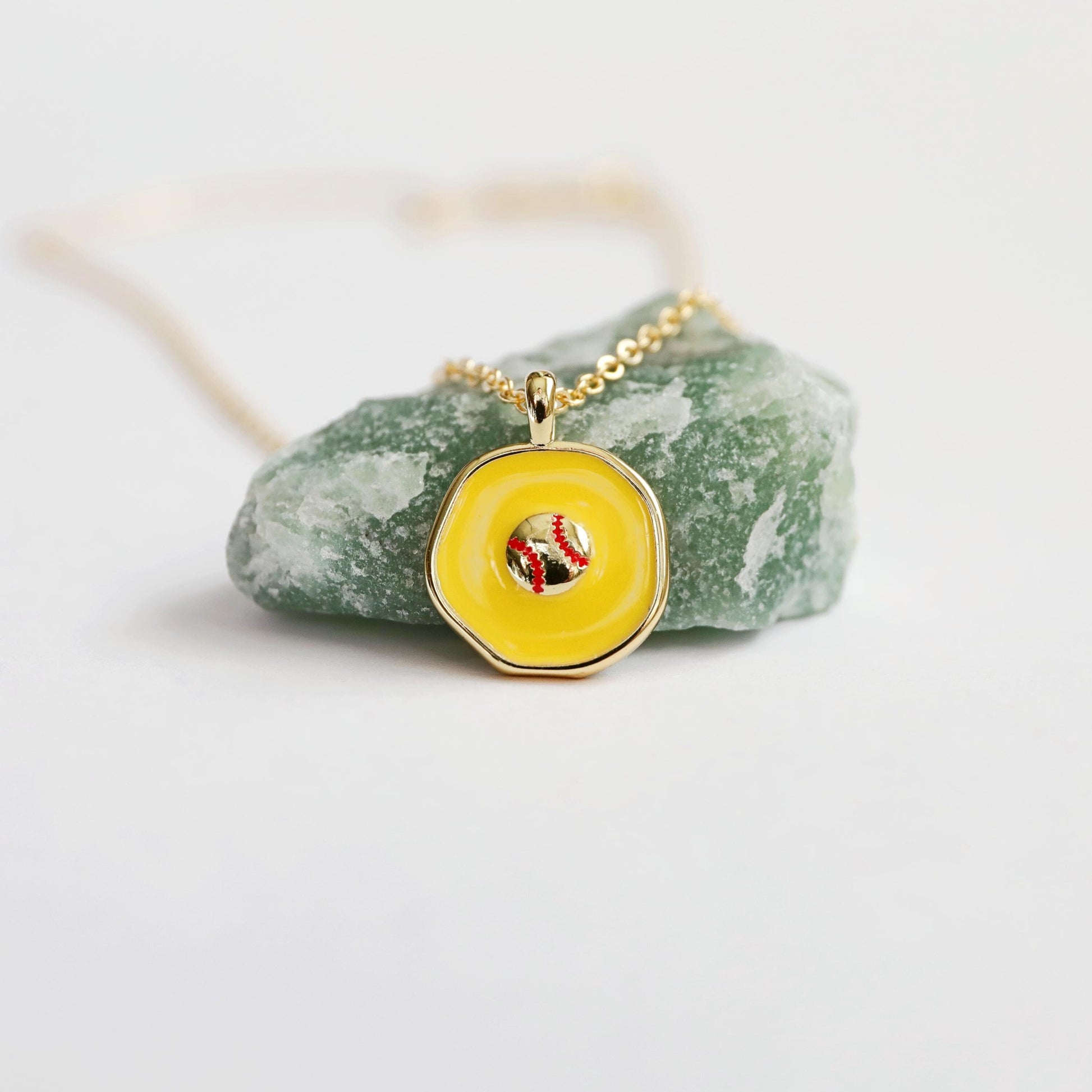 Baseball Charm Necklace, Yellow Baseball Necklace, Sports Team Gift, Birthday Gift, Sports Charm Necklace, Basketball Lover Gift