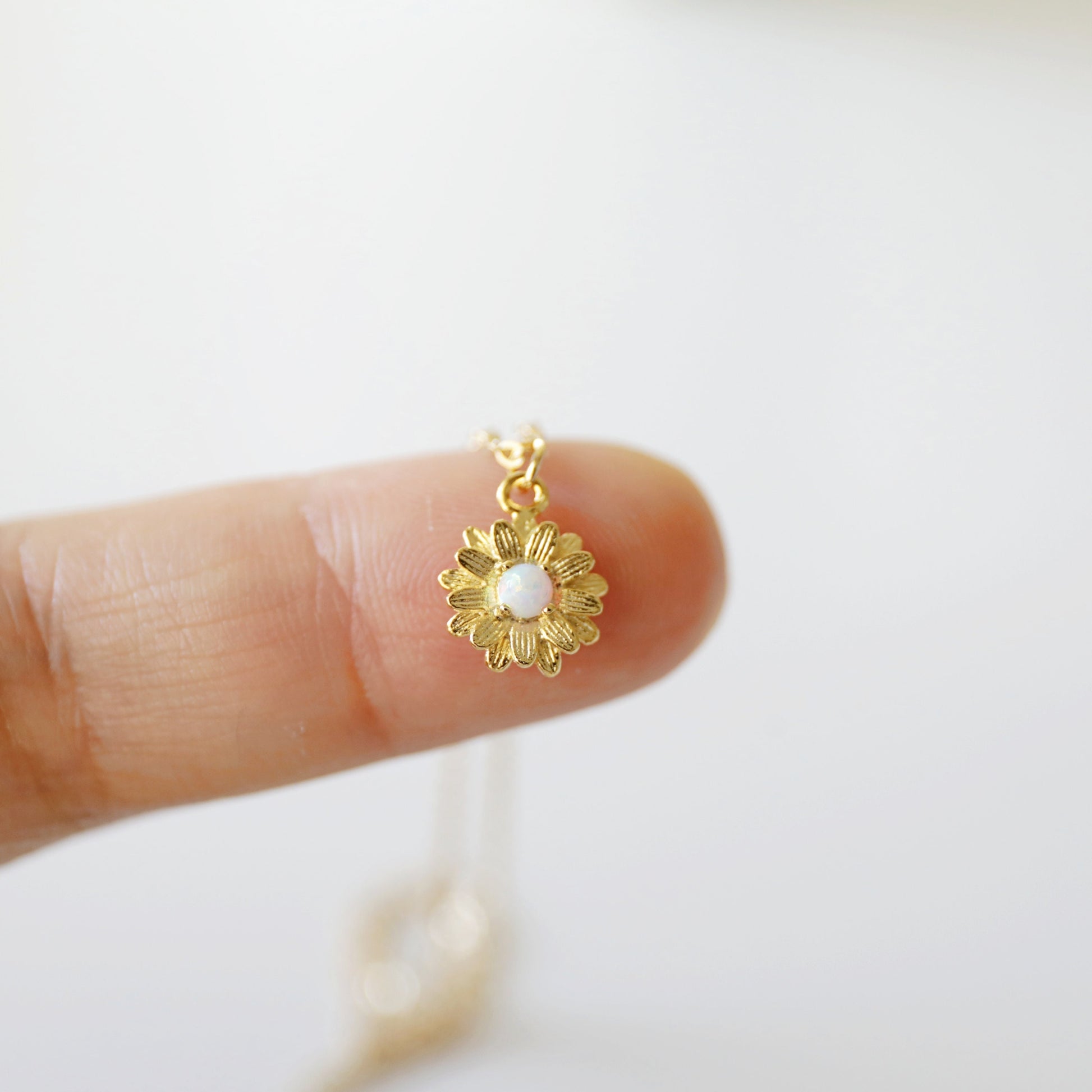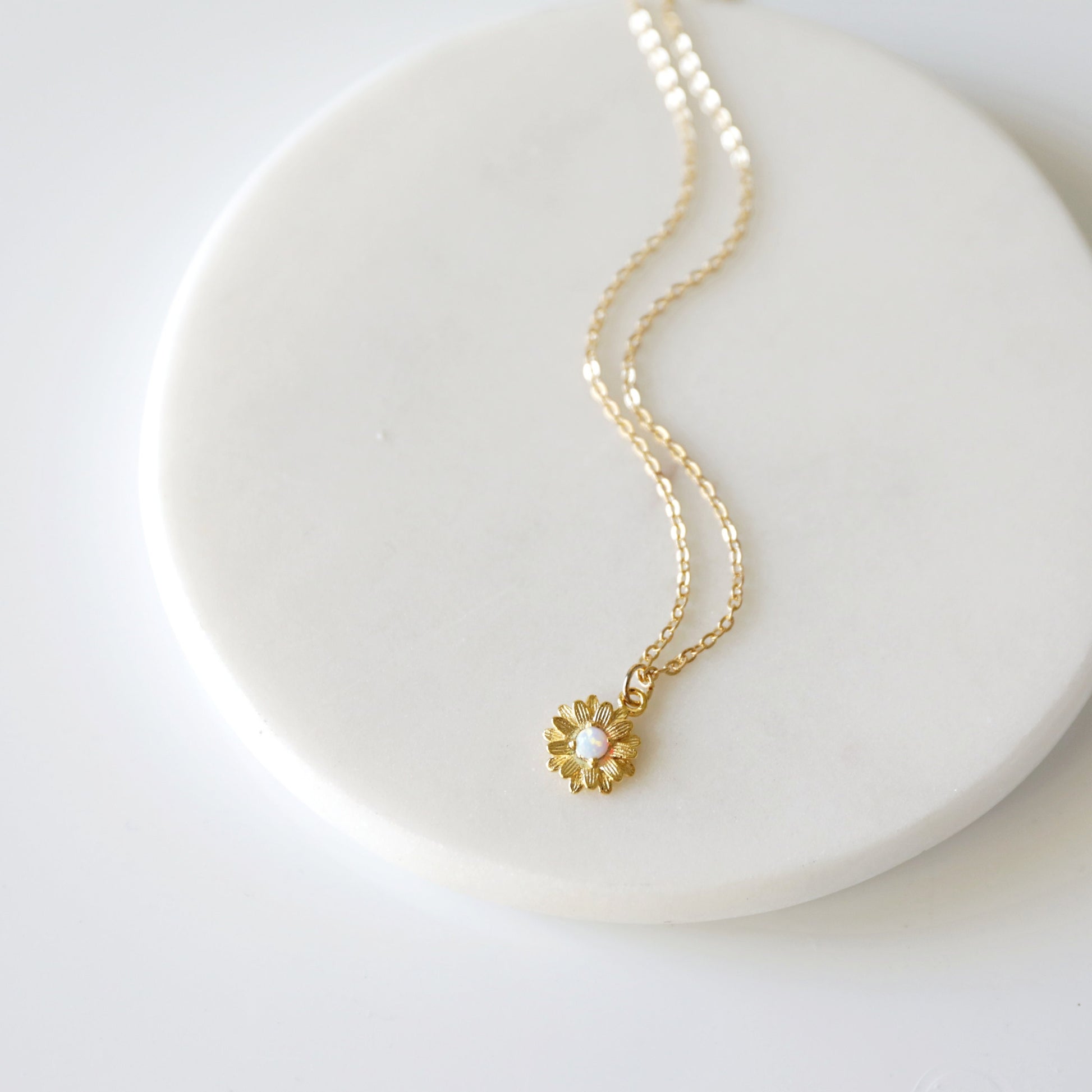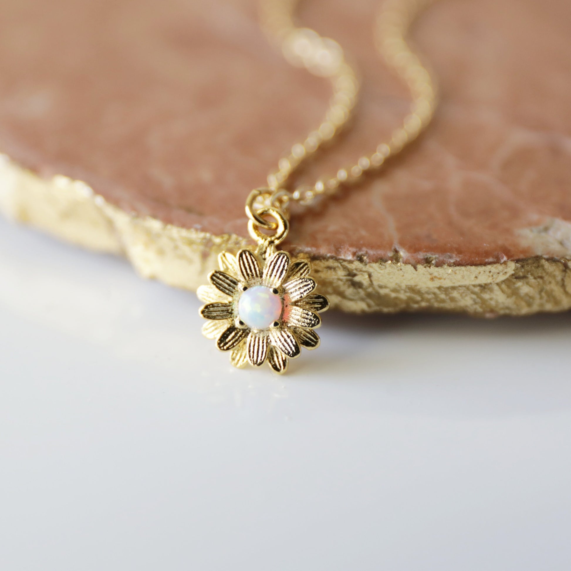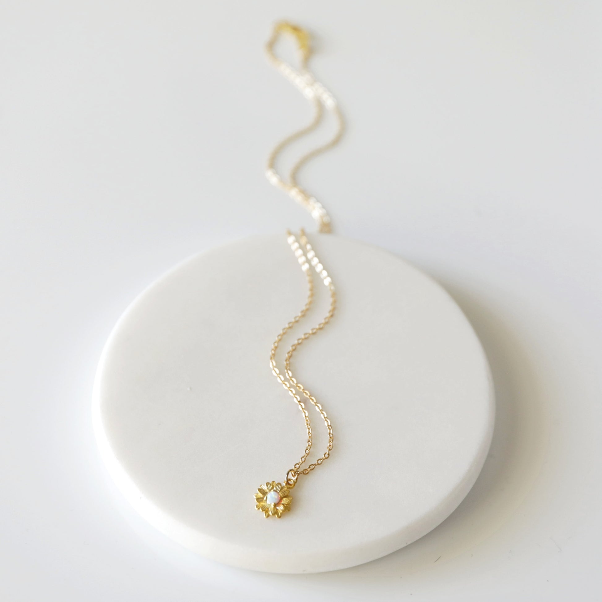 Dainty Gold Flower with White Opal Stone Necklace, Flower Opal Necklace, Gift for Best Friends, Bridesmaid Gift, Birthday Gift