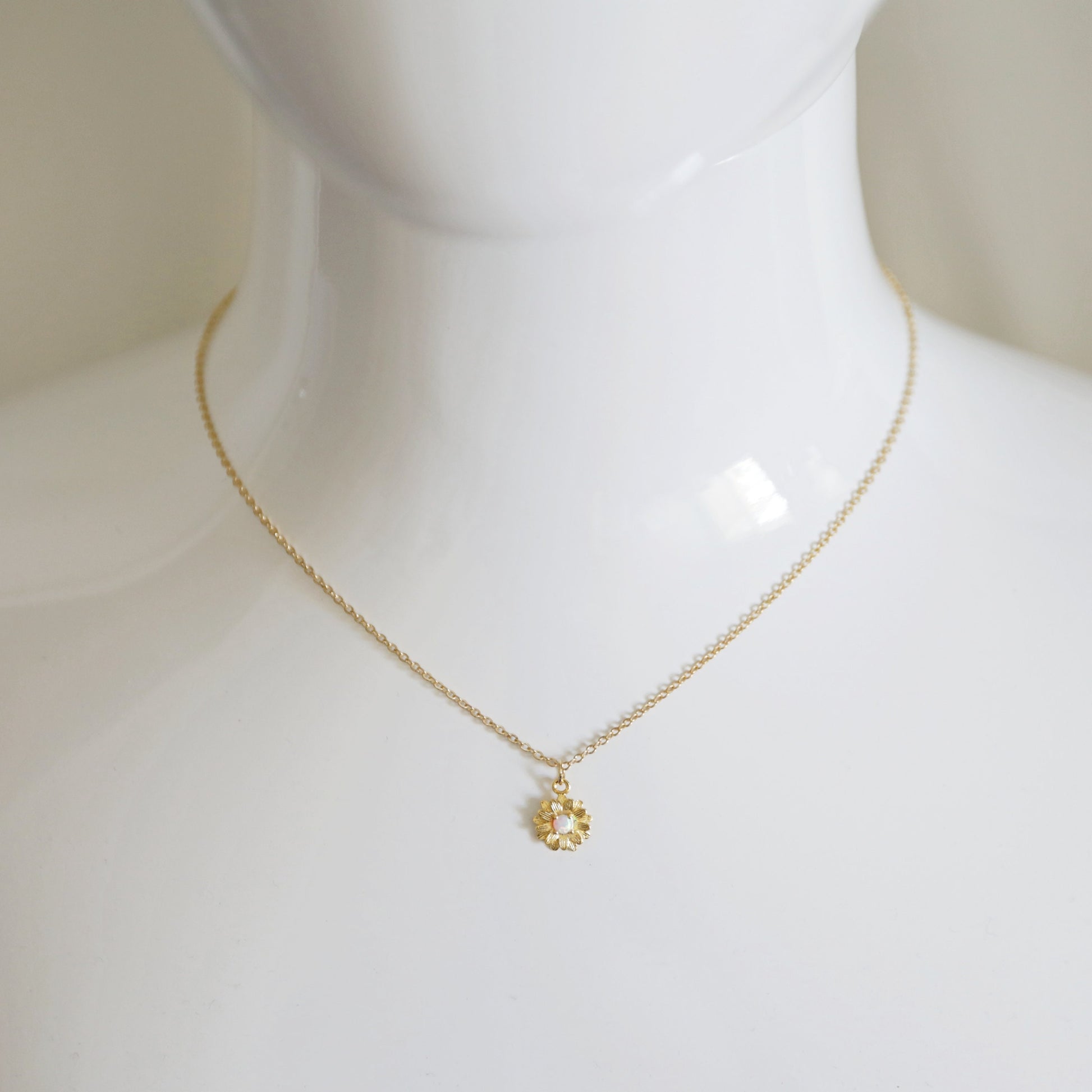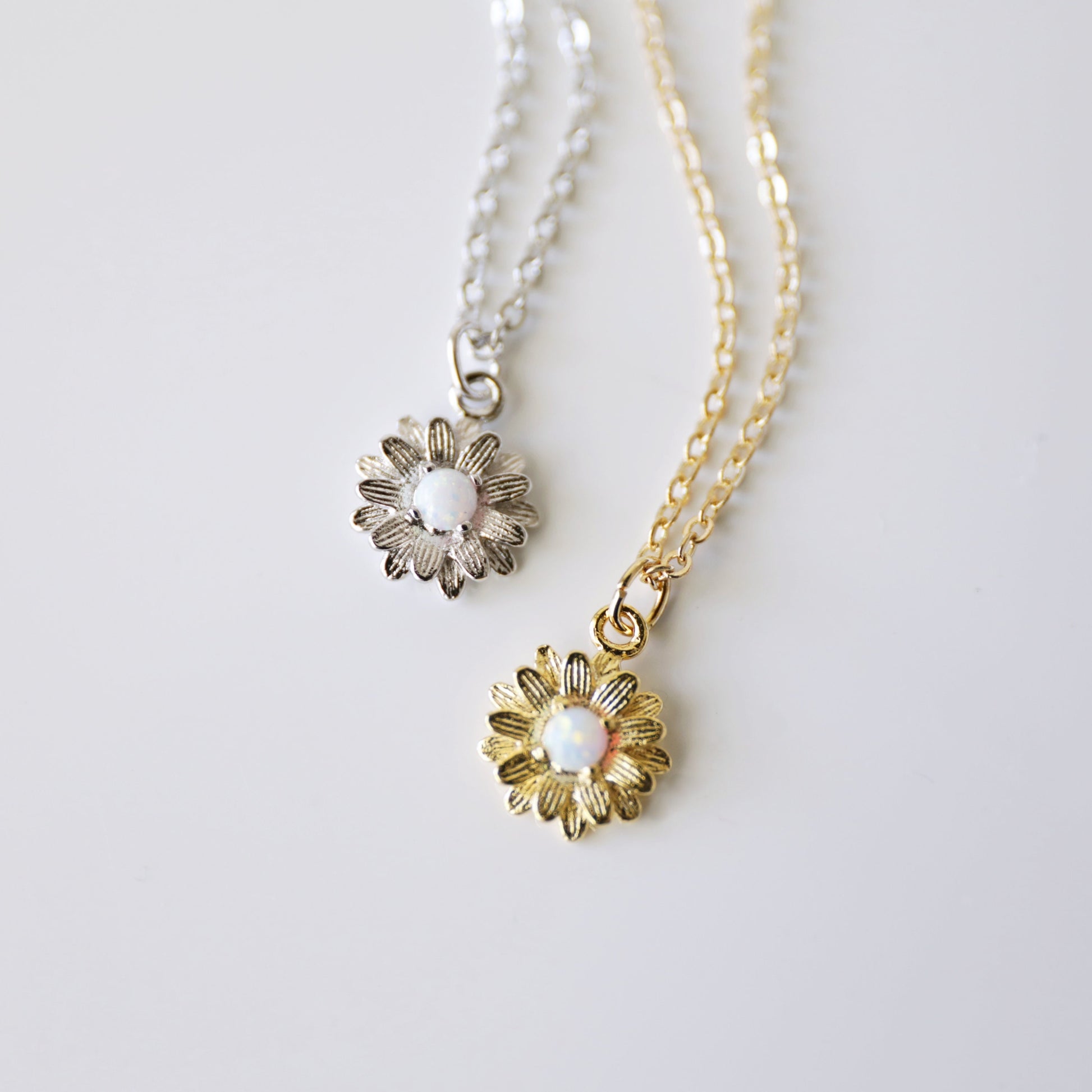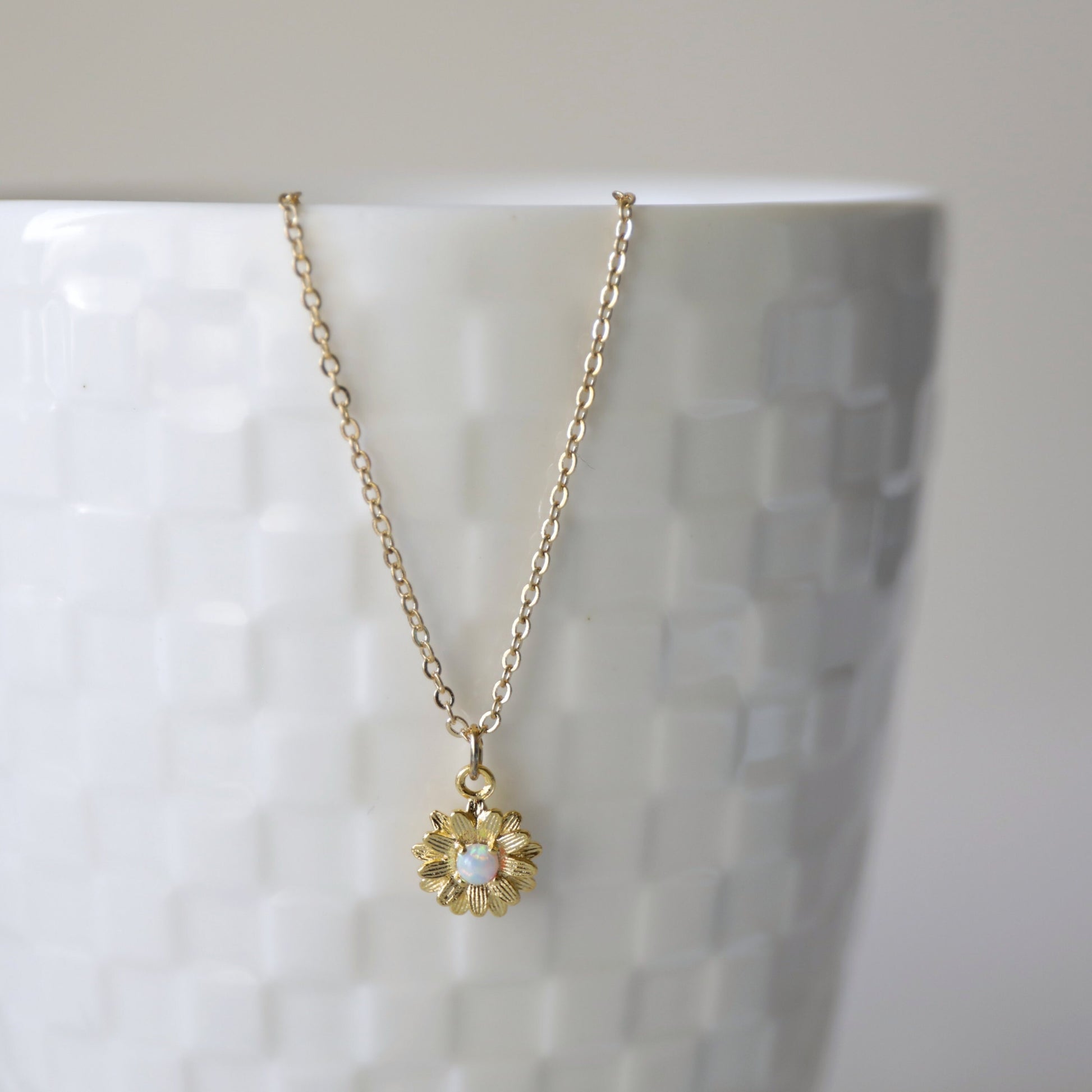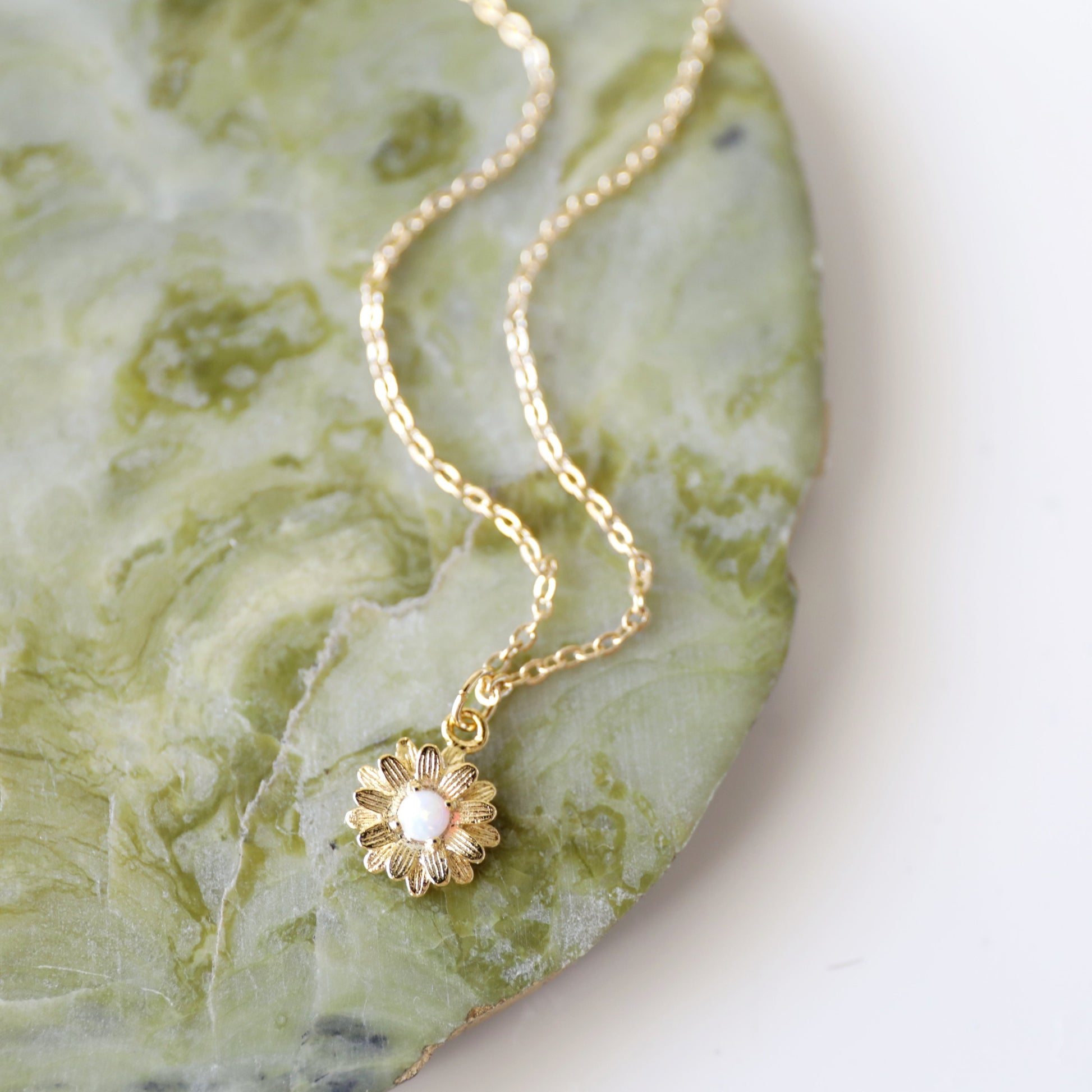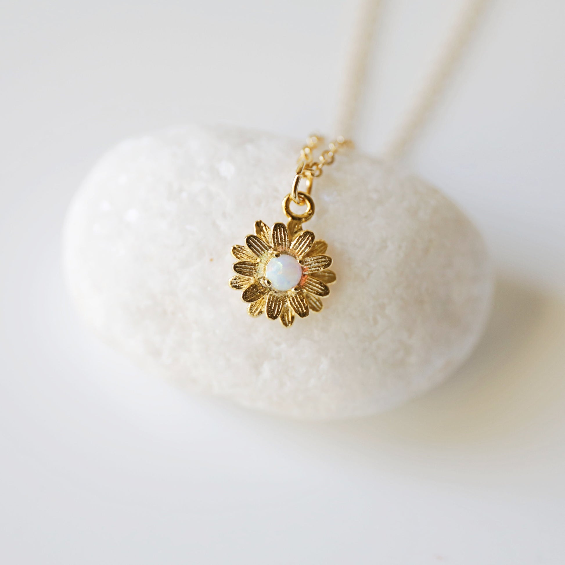 Dainty Gold Flower with White Opal Stone Necklace, Flower Opal Necklace, Gift for Best Friends, Bridesmaid Gift, Birthday Gift