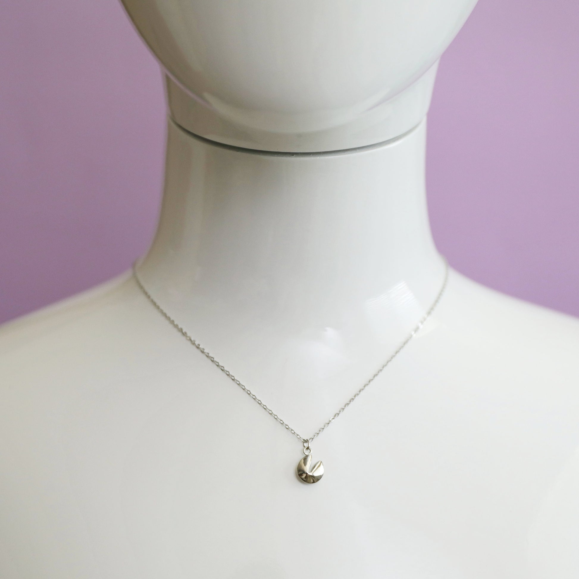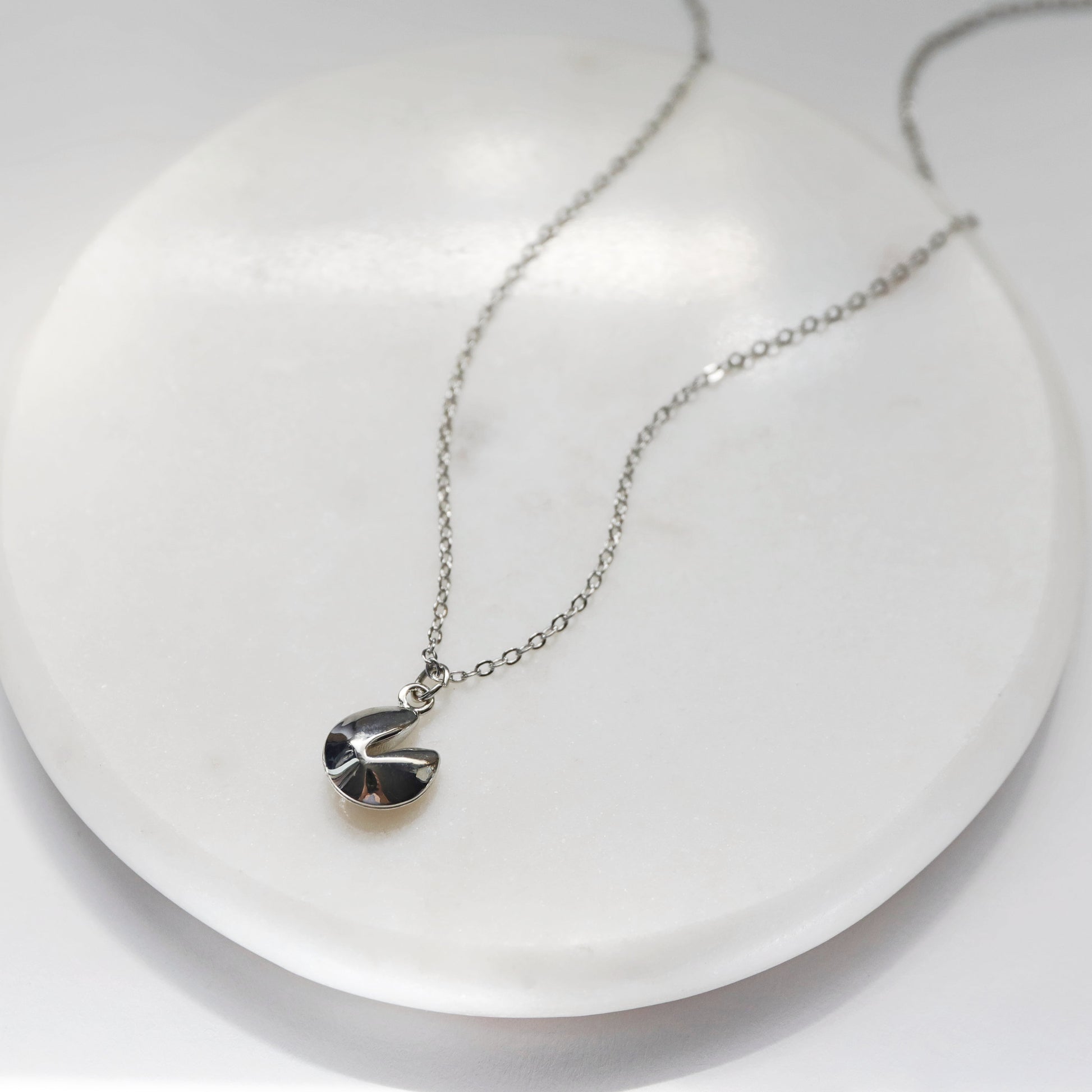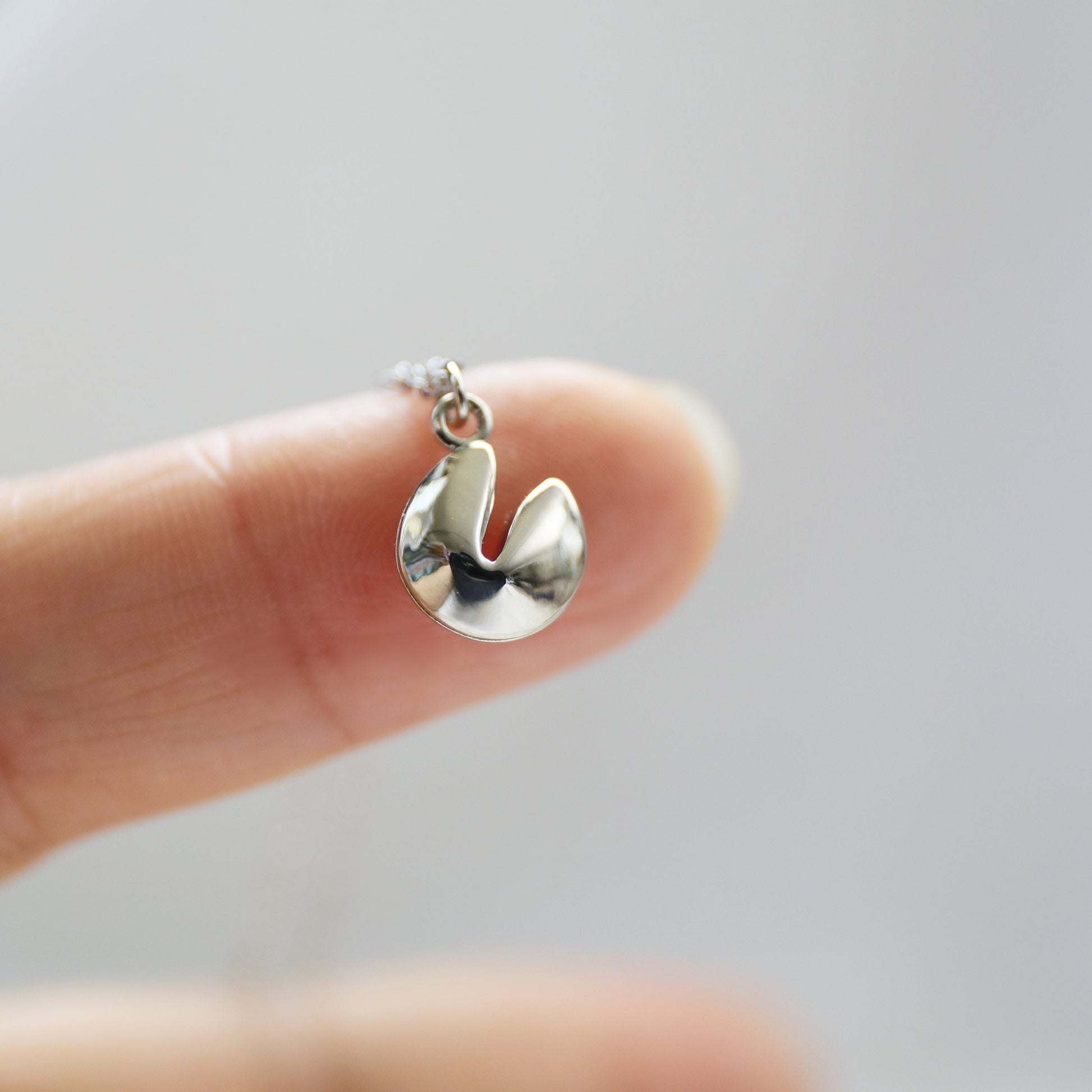 Dainty Silver Fortune Cookie Necklace, Lucky Charm Necklace