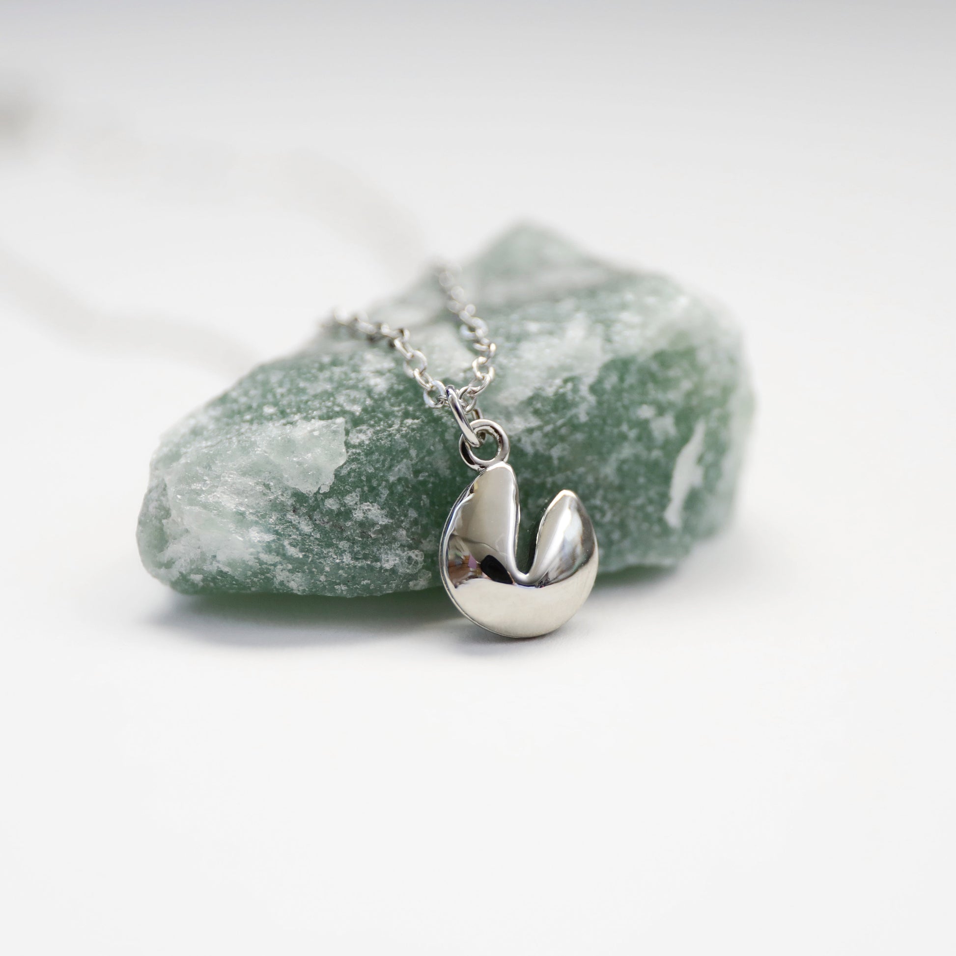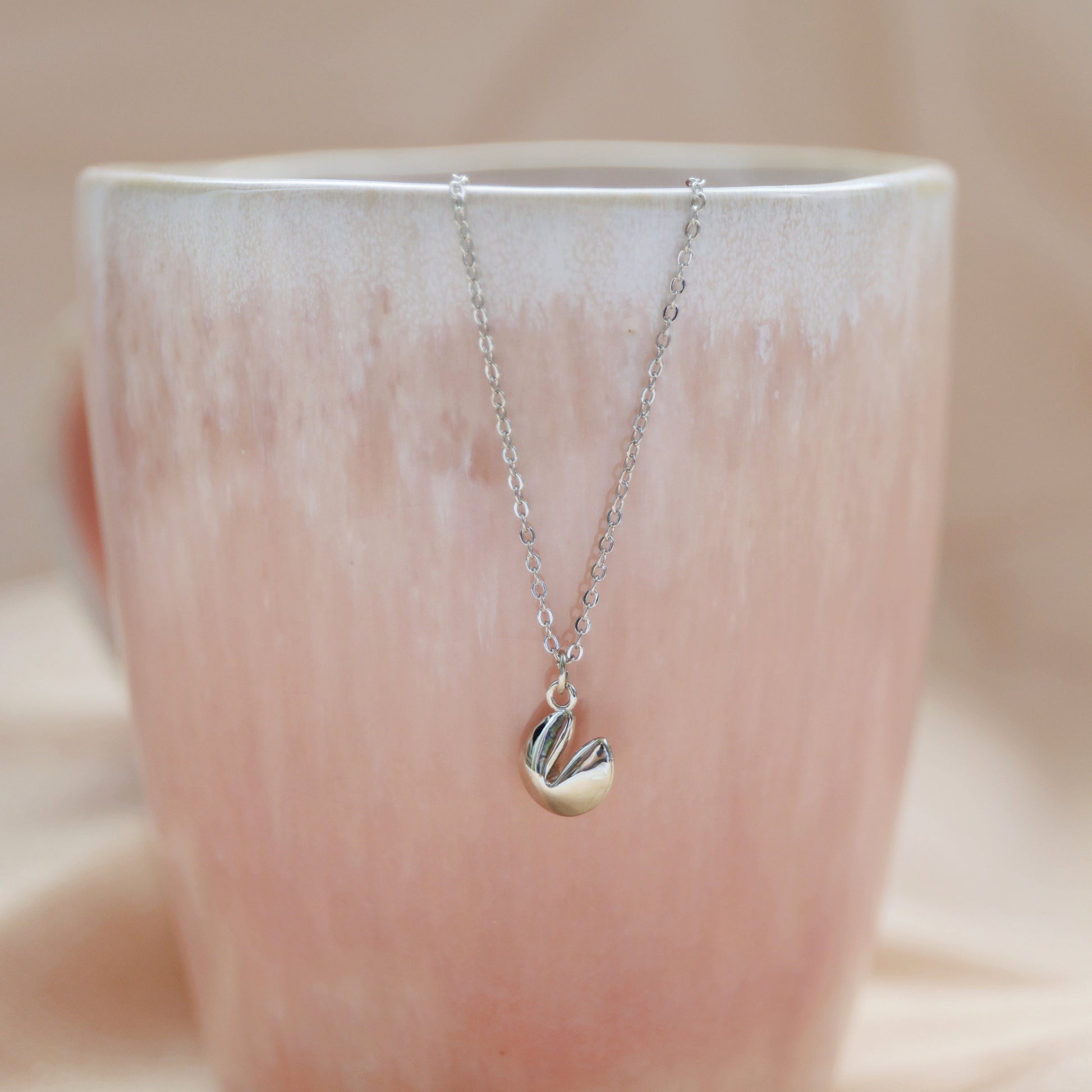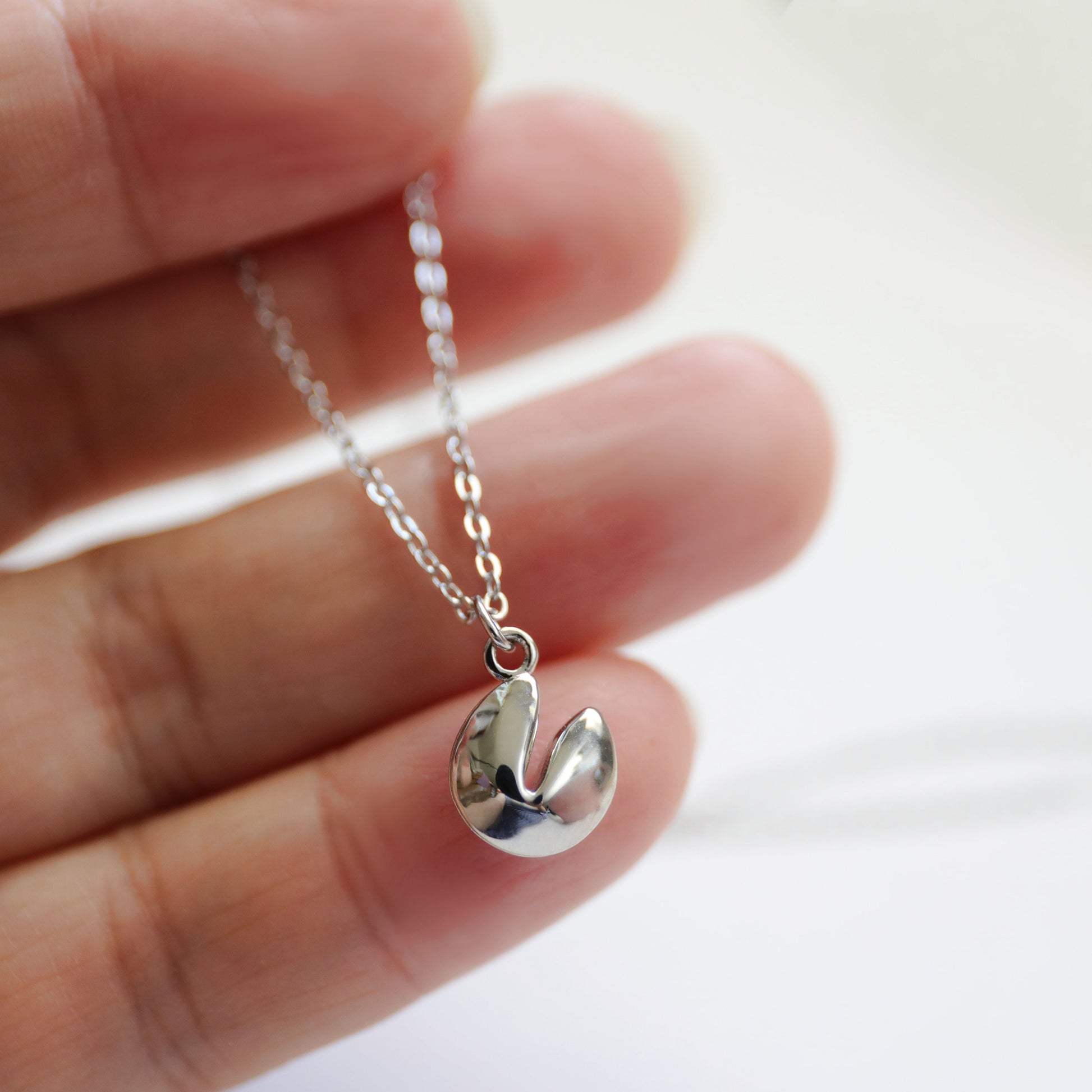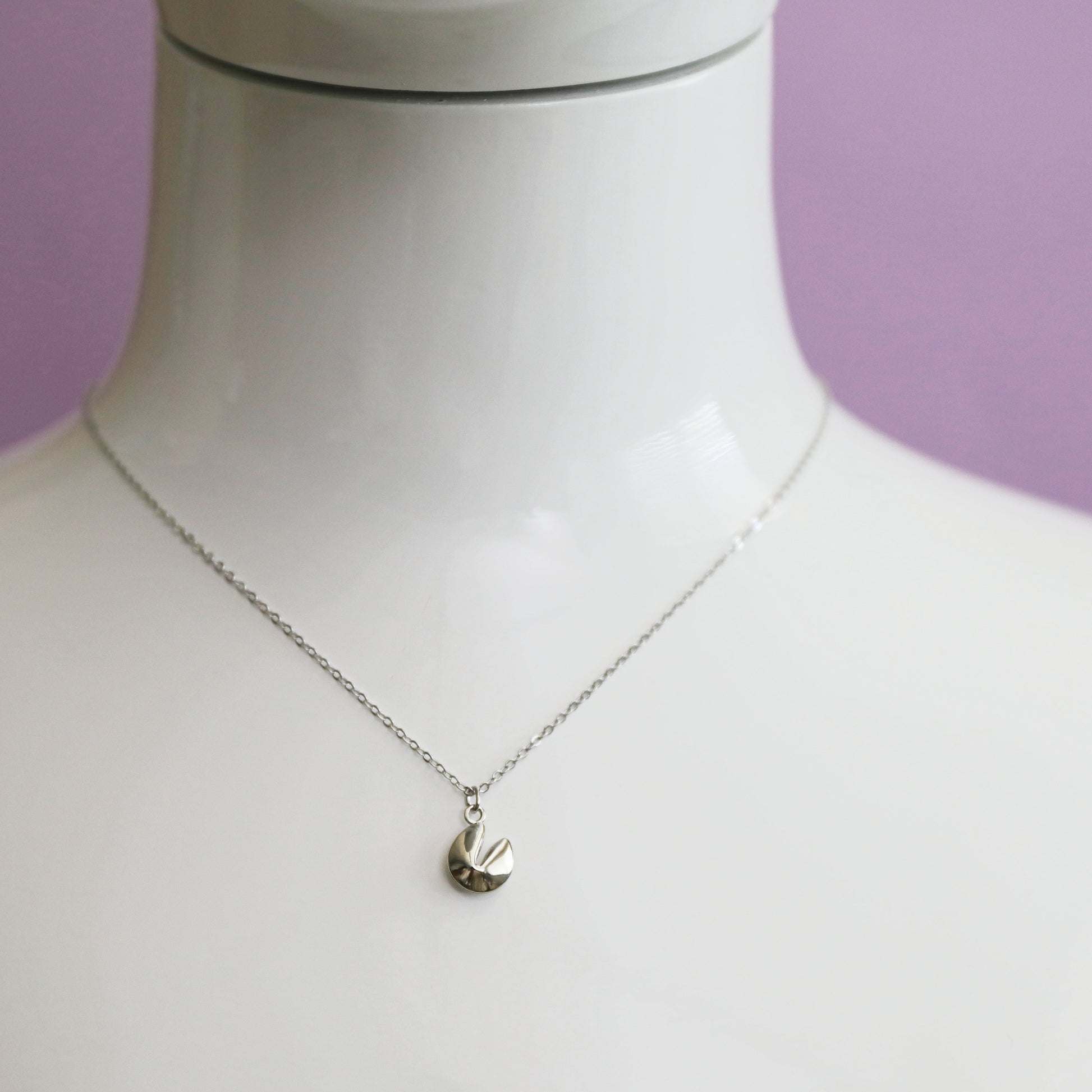 Dainty Silver Fortune Cookie Necklace, Lucky Charm Necklace