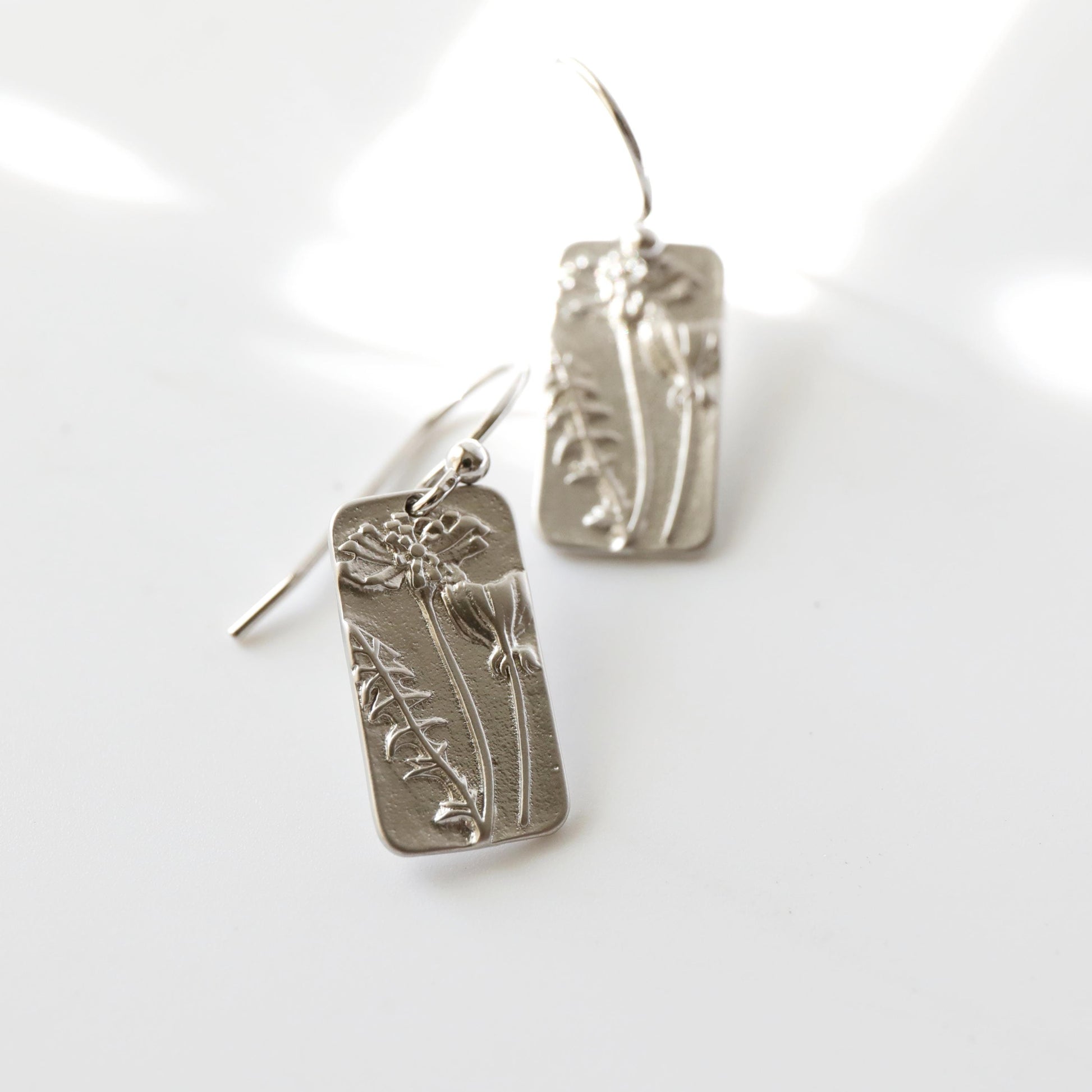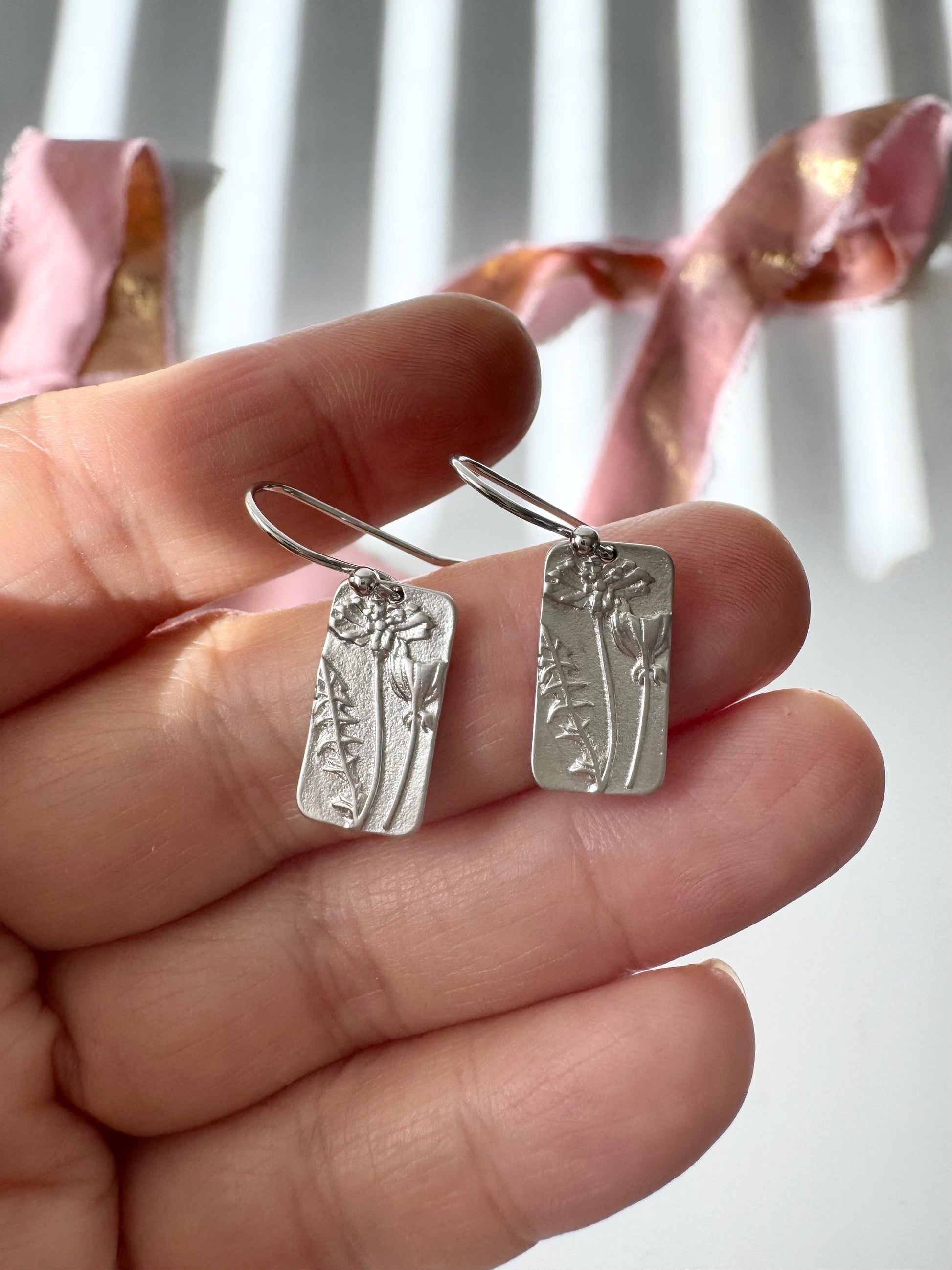 Beautiful and lovely silver flower rectangle charm earrings. Made of matte finish silver color flower rectangle charm with french ear wires. Soft and simple. Great for gift, everyday or special occasion. Your item will ship in a gift box. Please feel free to contact me if you have any questions.