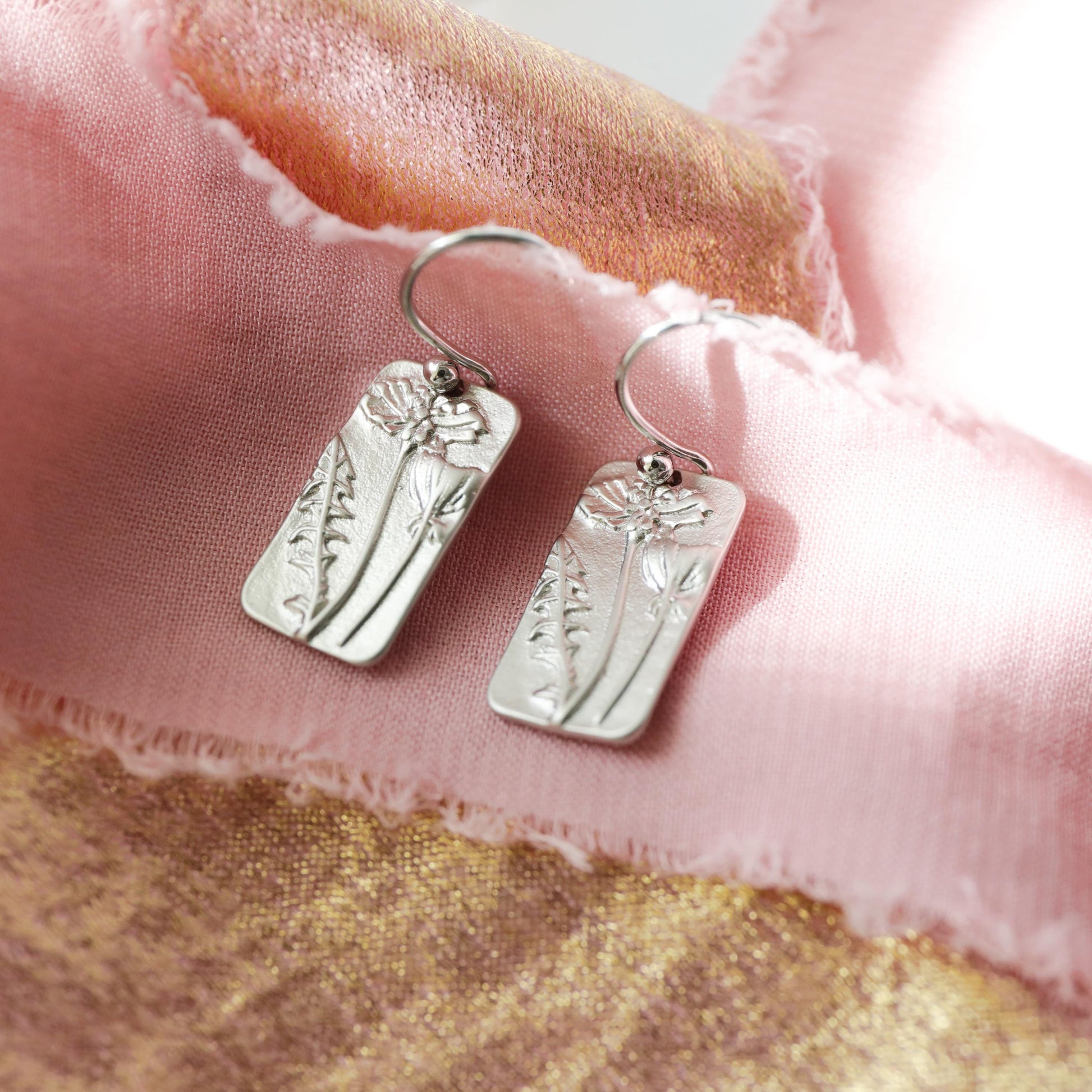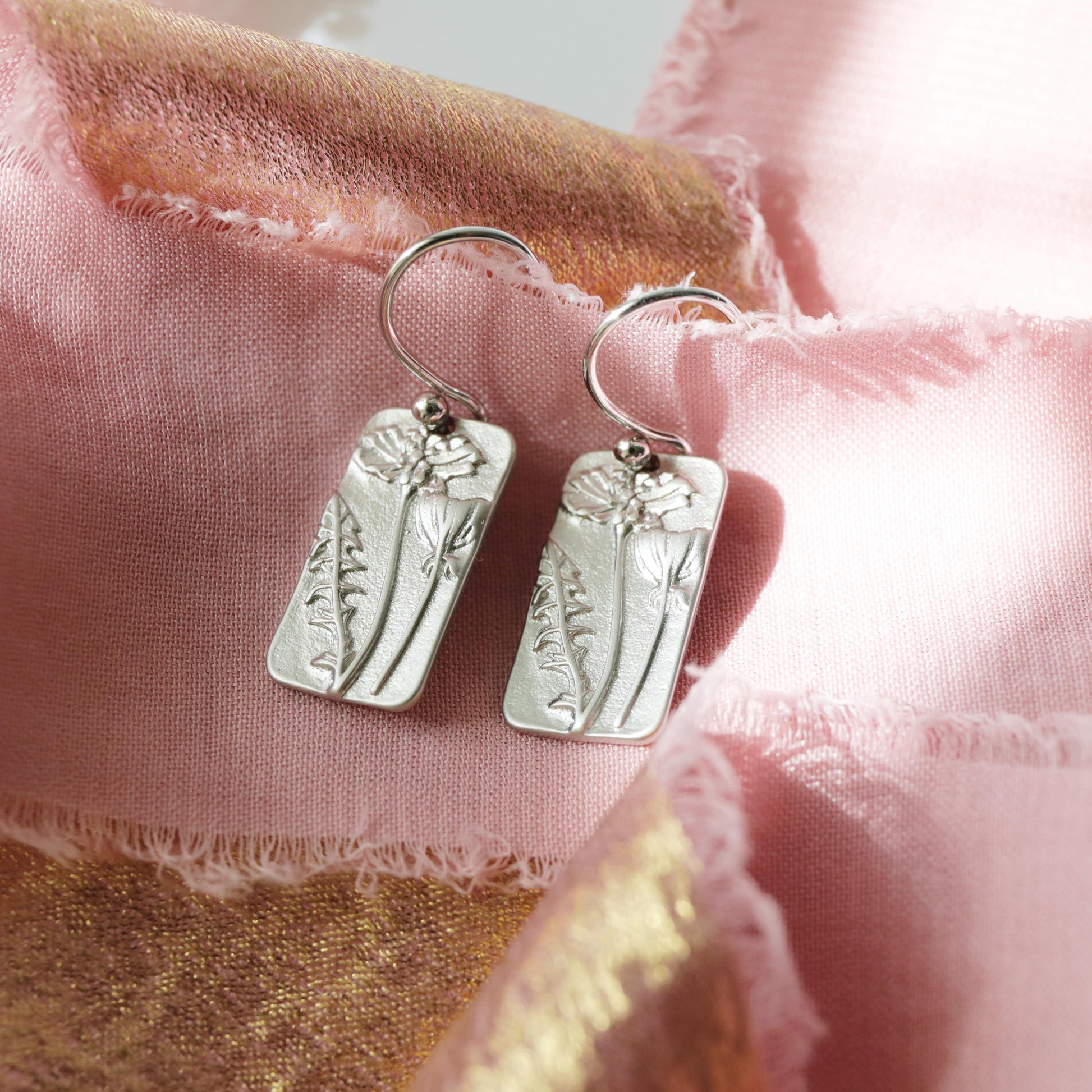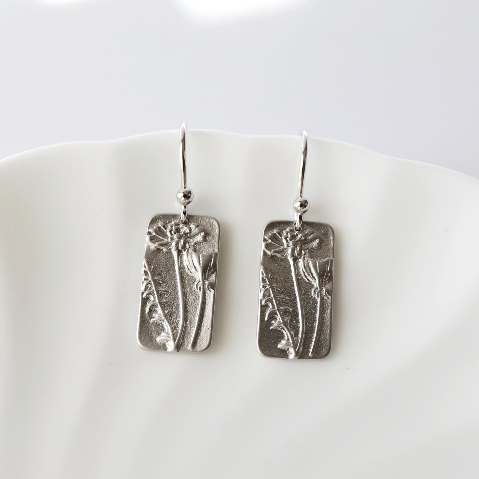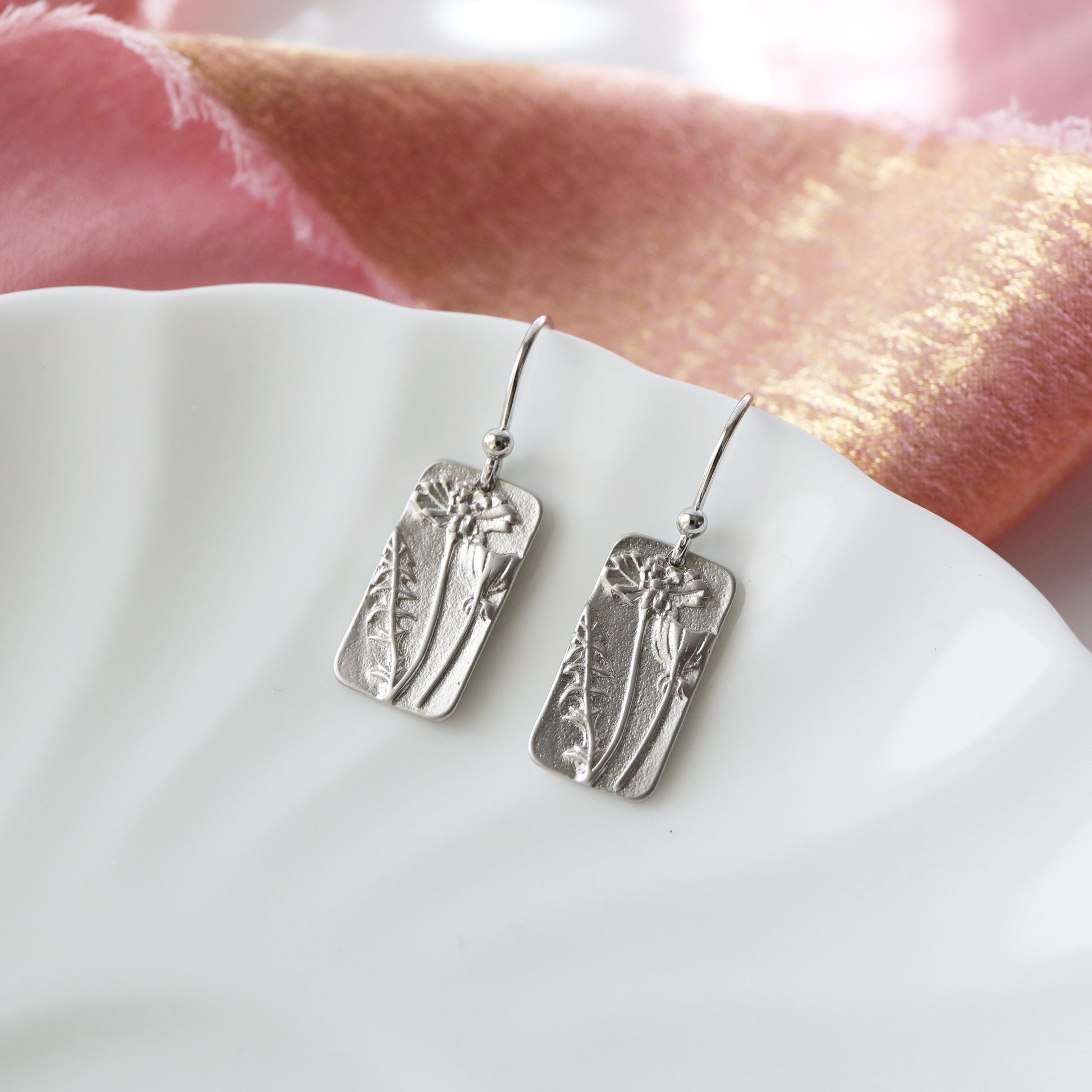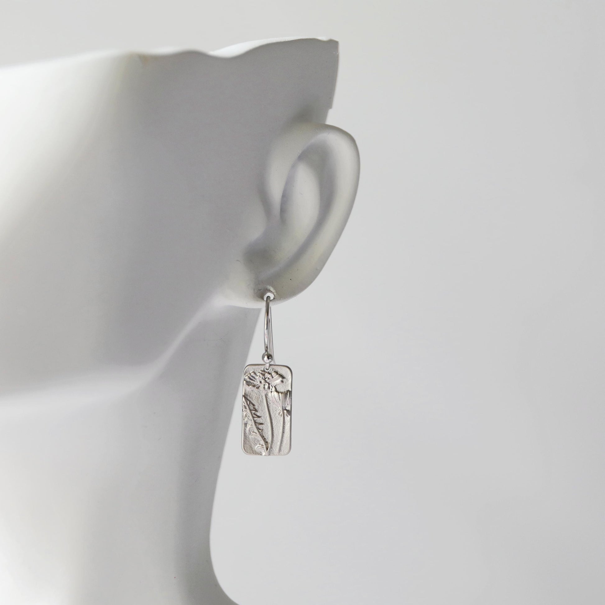 Flower Rectangle Dangle Earrings, Silver Flower French Ear-wire Earrings,Birthday Gift,Graduation Gift