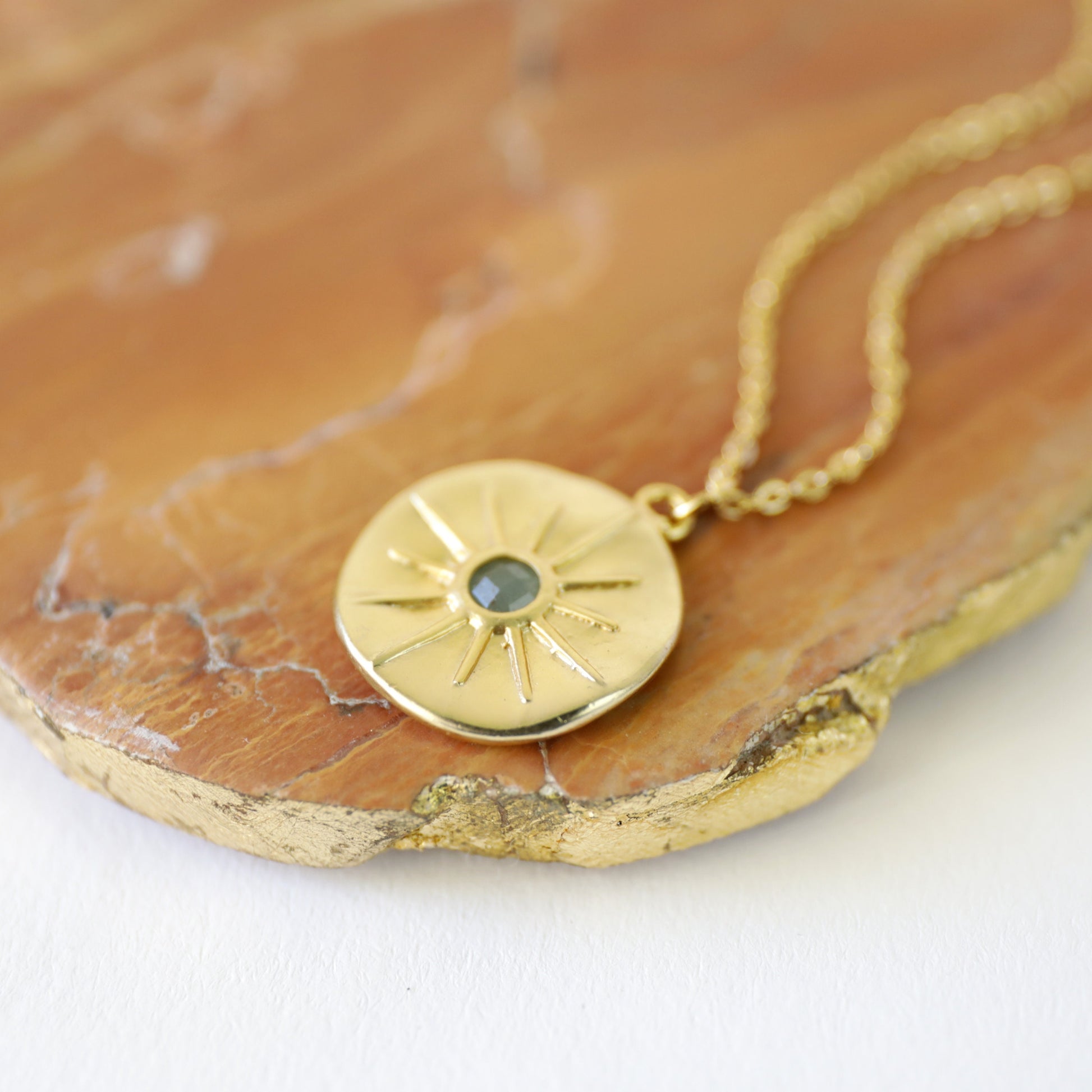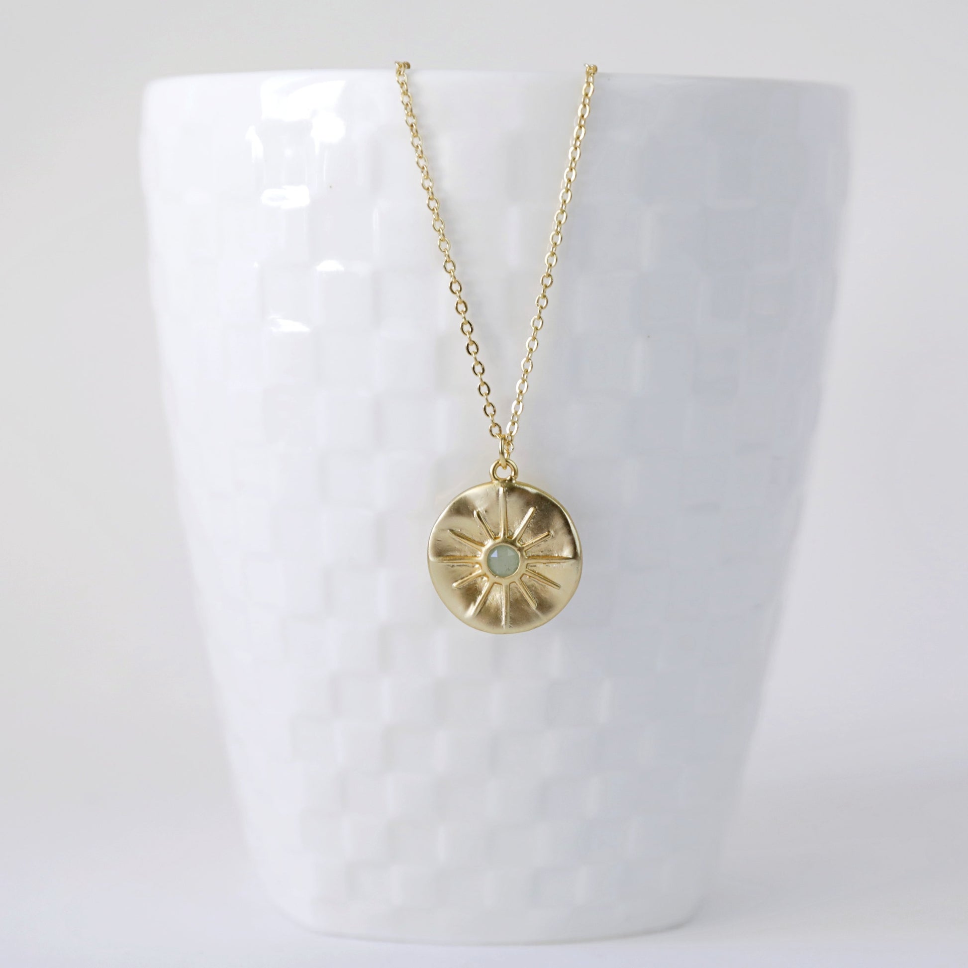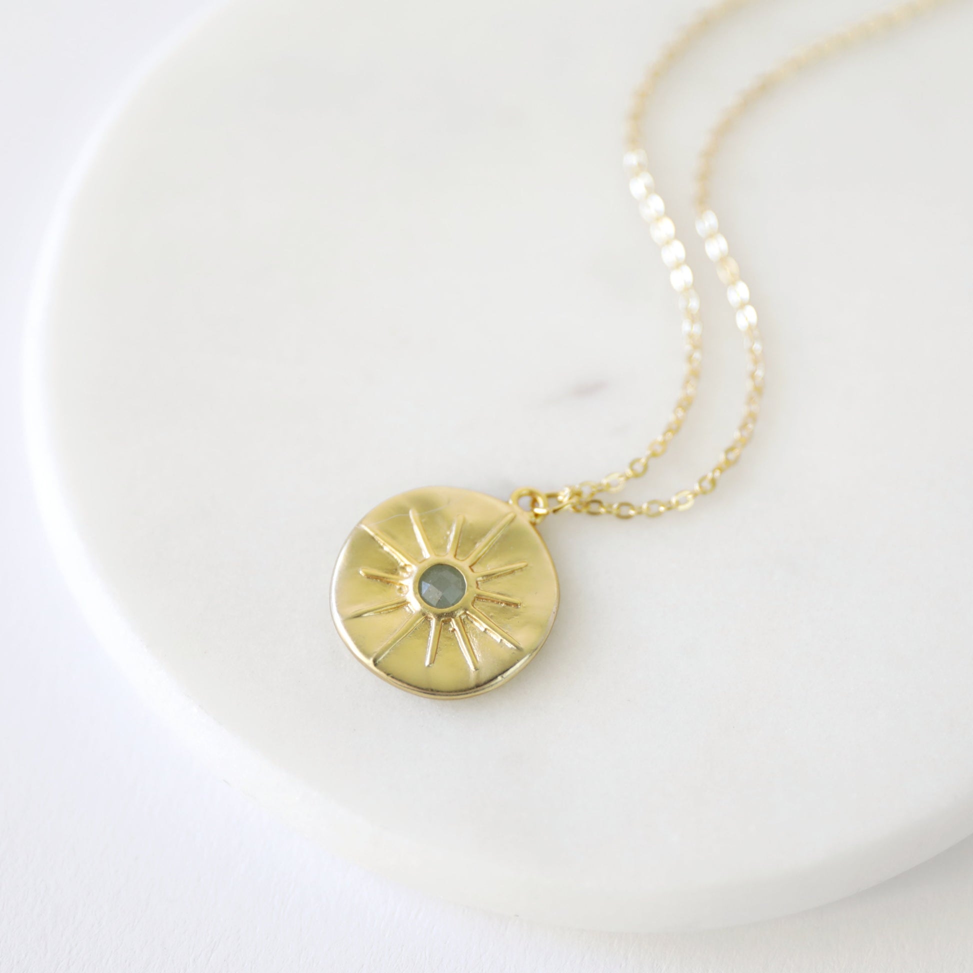 Beautiful and lovely gold star round charm necklace. Made of matte gold finish Green Aventurine stone star round charm with skinny gold plated brass chain. Simple and warm. Necklace will ship in a gift box. If you have any question, please feel free to contact me. Thanks :) ♥ Necklace length 16"+2" extend chain ♥ Charm 3/4" ♥ Gold plated over brass/ Green Aventurine ♥ Delivery Time Fast shipping within 1 - 3 days