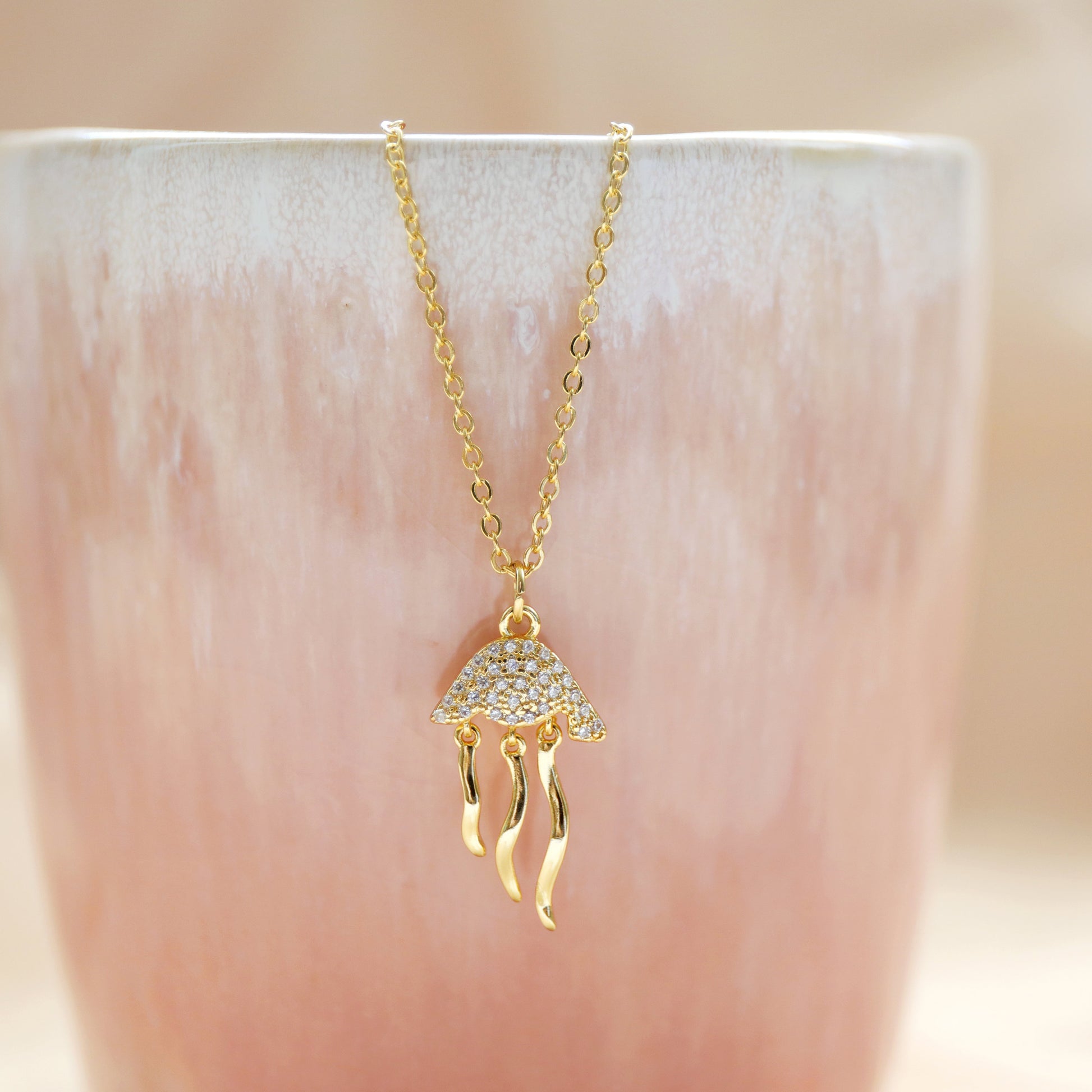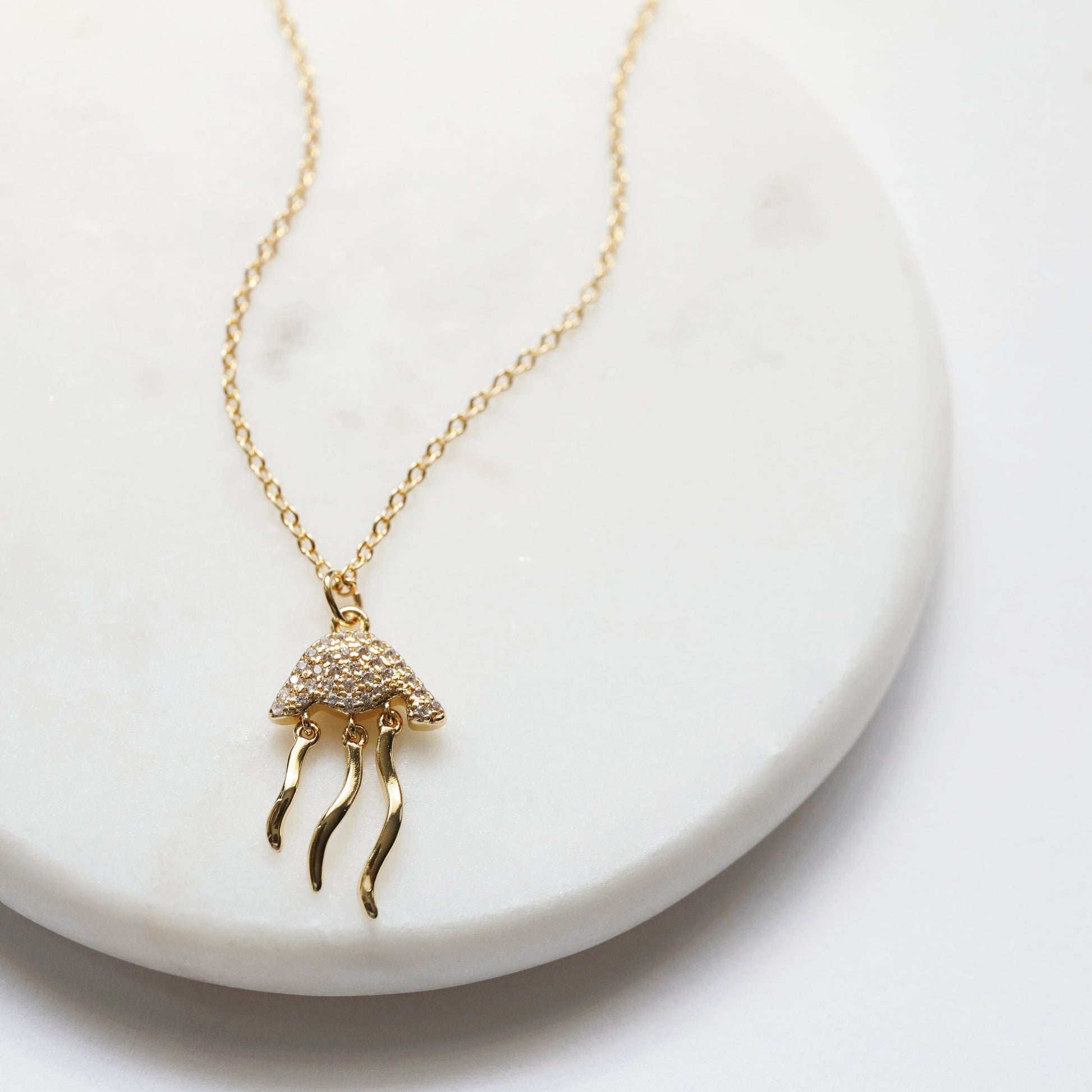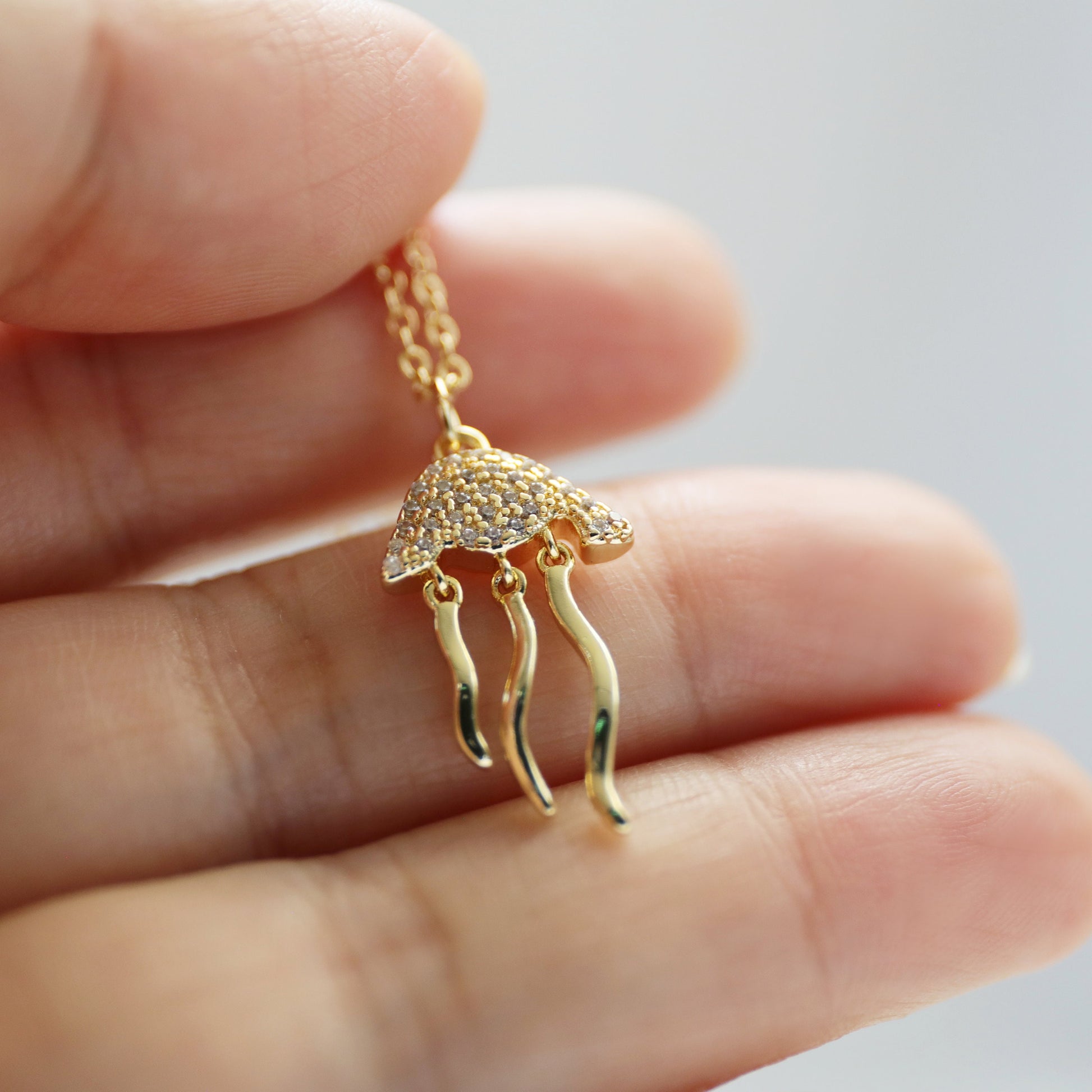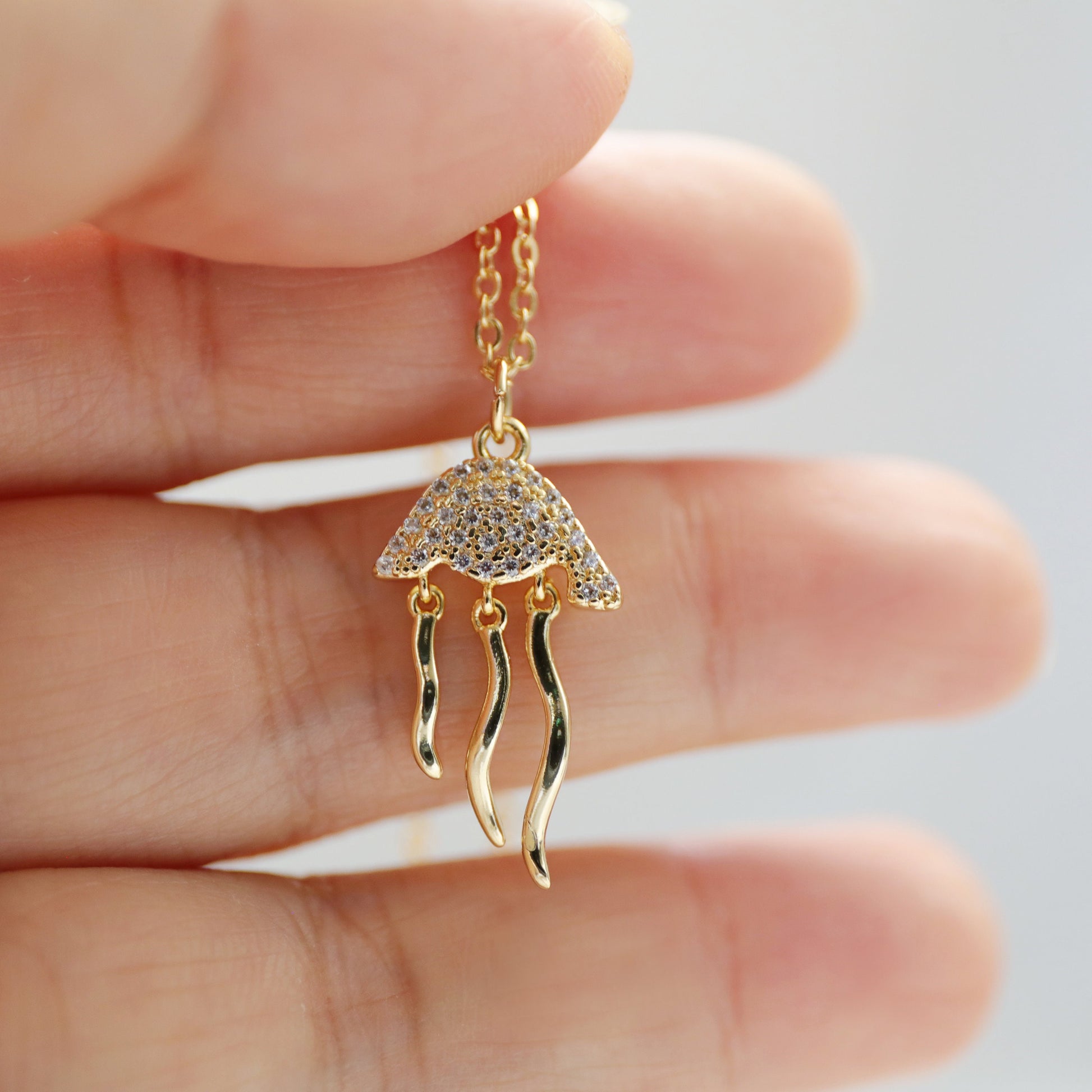 Jellyfish Charm Necklace, Dainty Gold Jellyfish Necklace, Birthday Gift, Minimalist Necklace