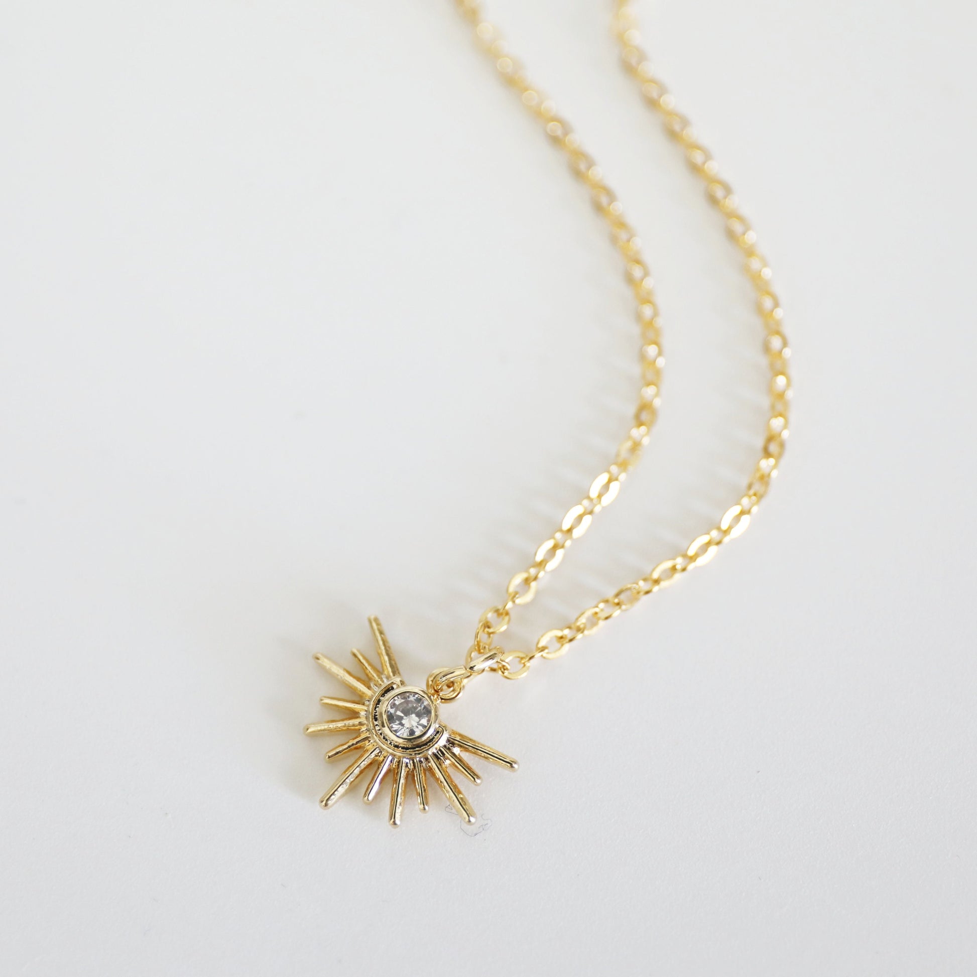 Sun Necklace, Dainty CZ Stone Sun Charm Necklace,April Birthstone Necklace,Birthday Gift, Layered Necklace,Minimalist Necklace