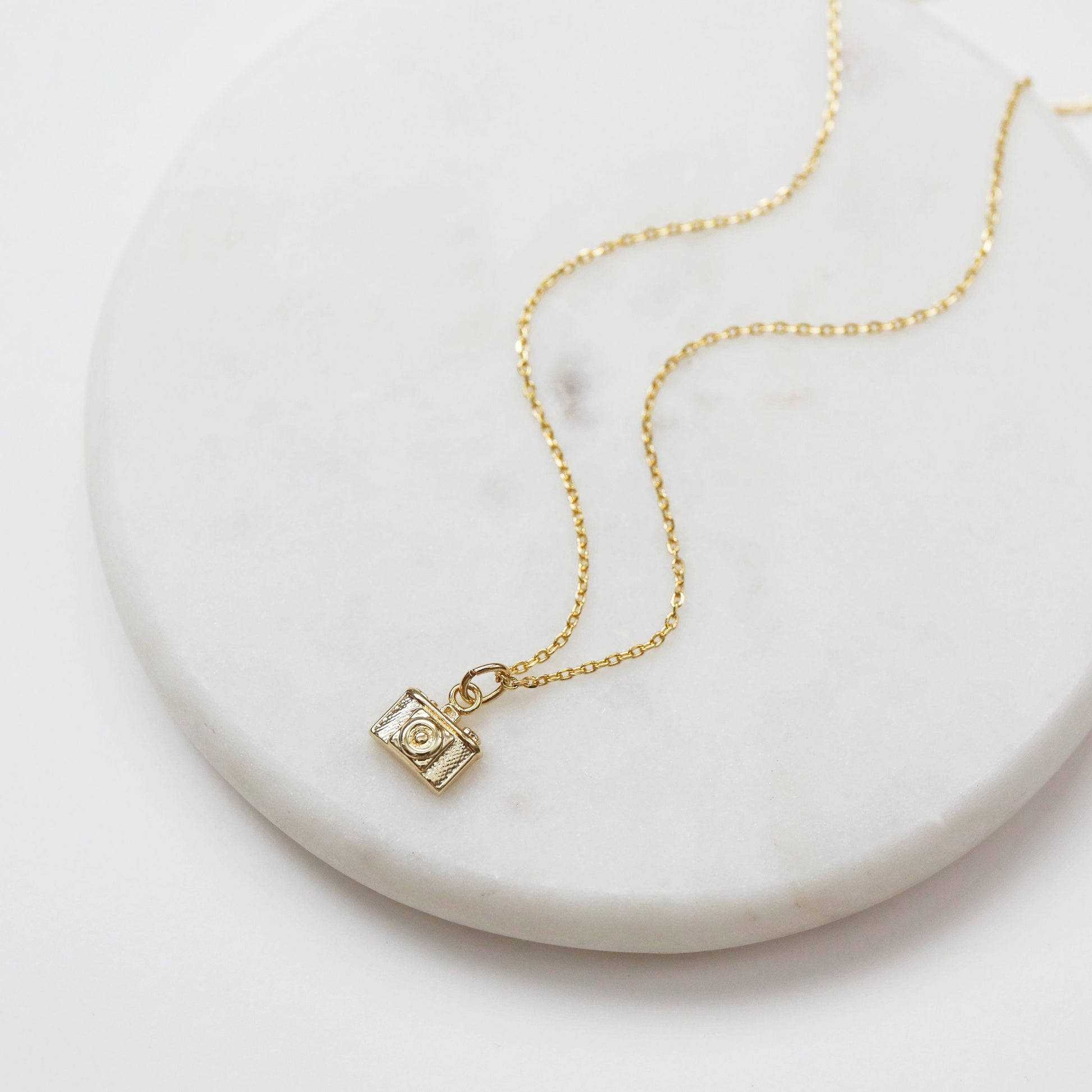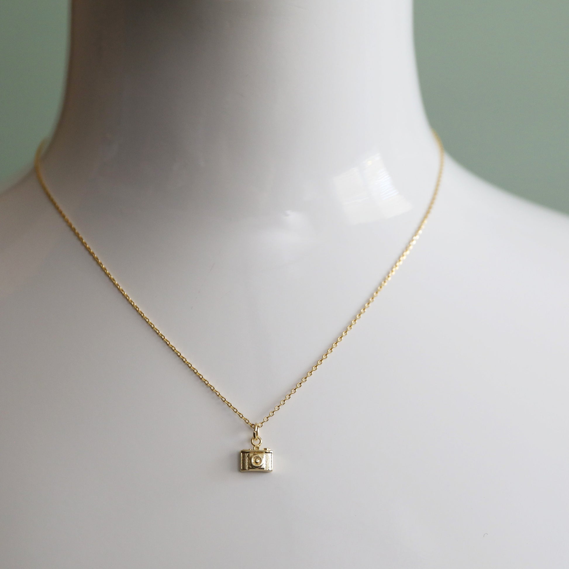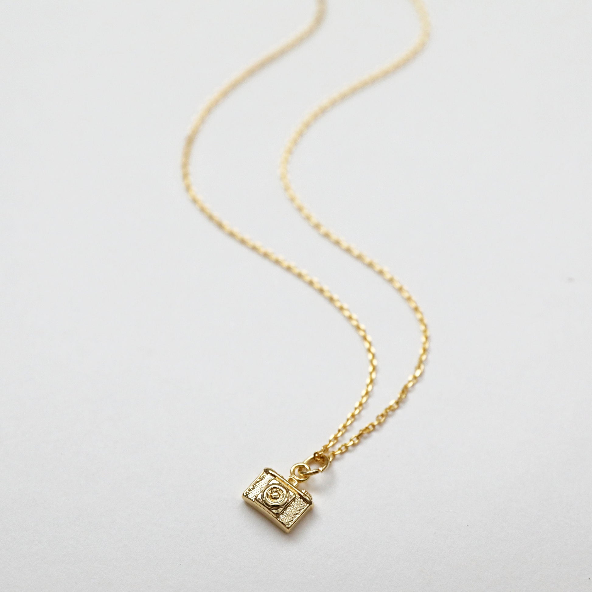 Beautiful and lovely super tiny camera necklace made of gold plated camera pendant with skinny gold plated brass chain. Simple and cute looking dainty necklace is good for yourself or gift! Your necklace will ship in a gift box. ♥Chain length 14"-20" ♥Pendant 1/4" x 3/8" ♥Gold plated over brass ♥ Delivery Time Fast shipping within 1 - 3 days