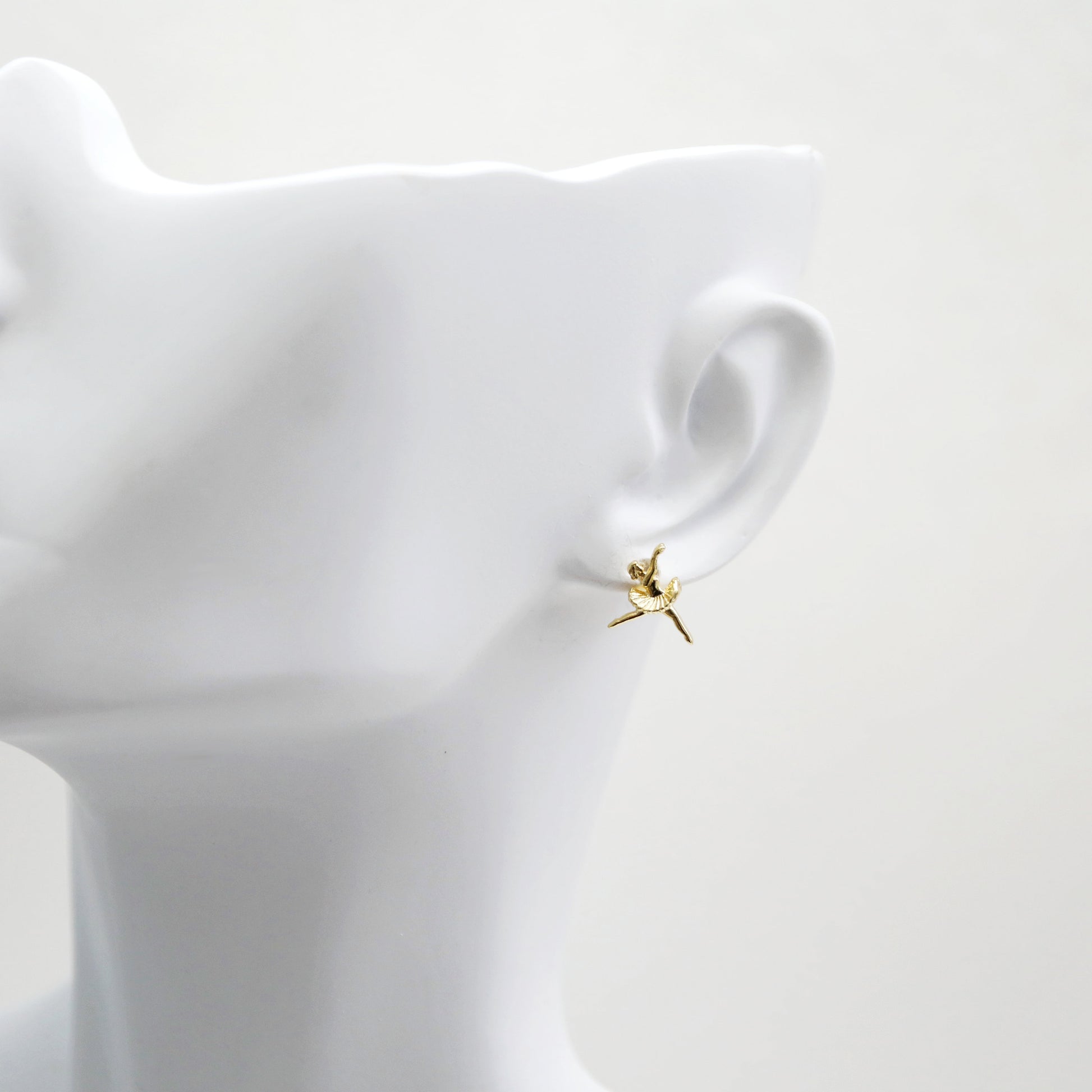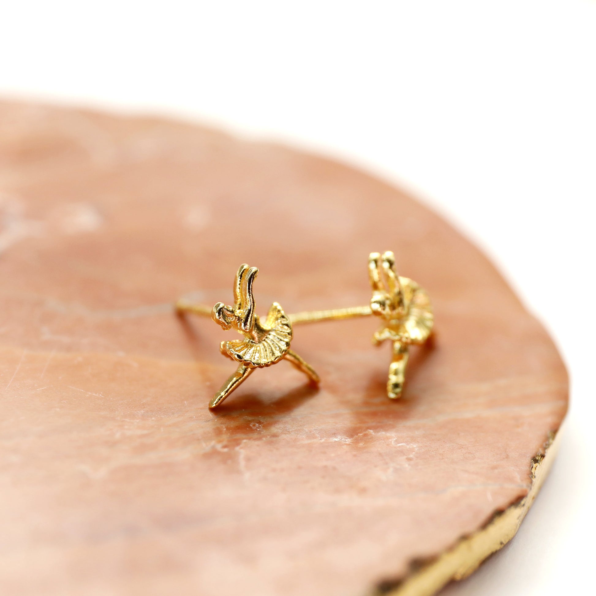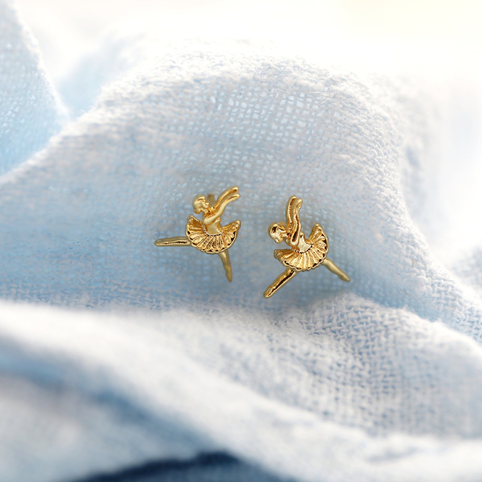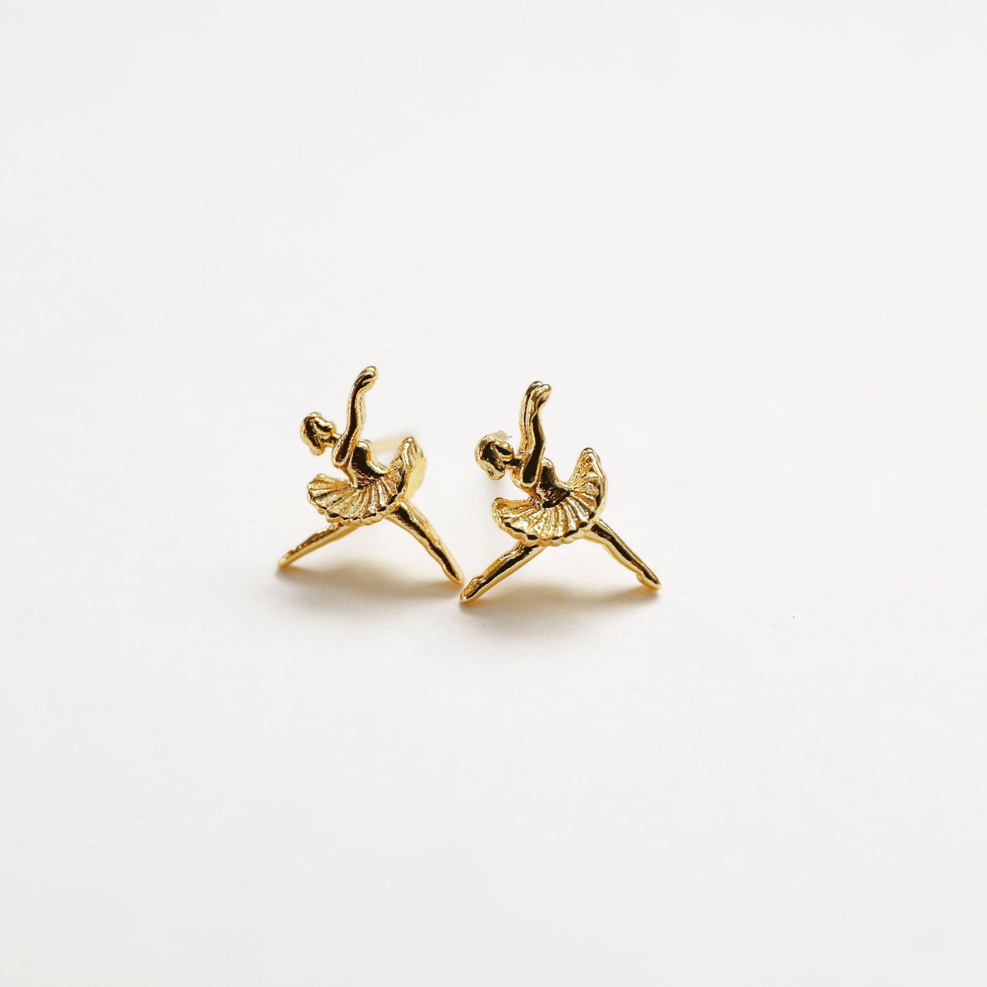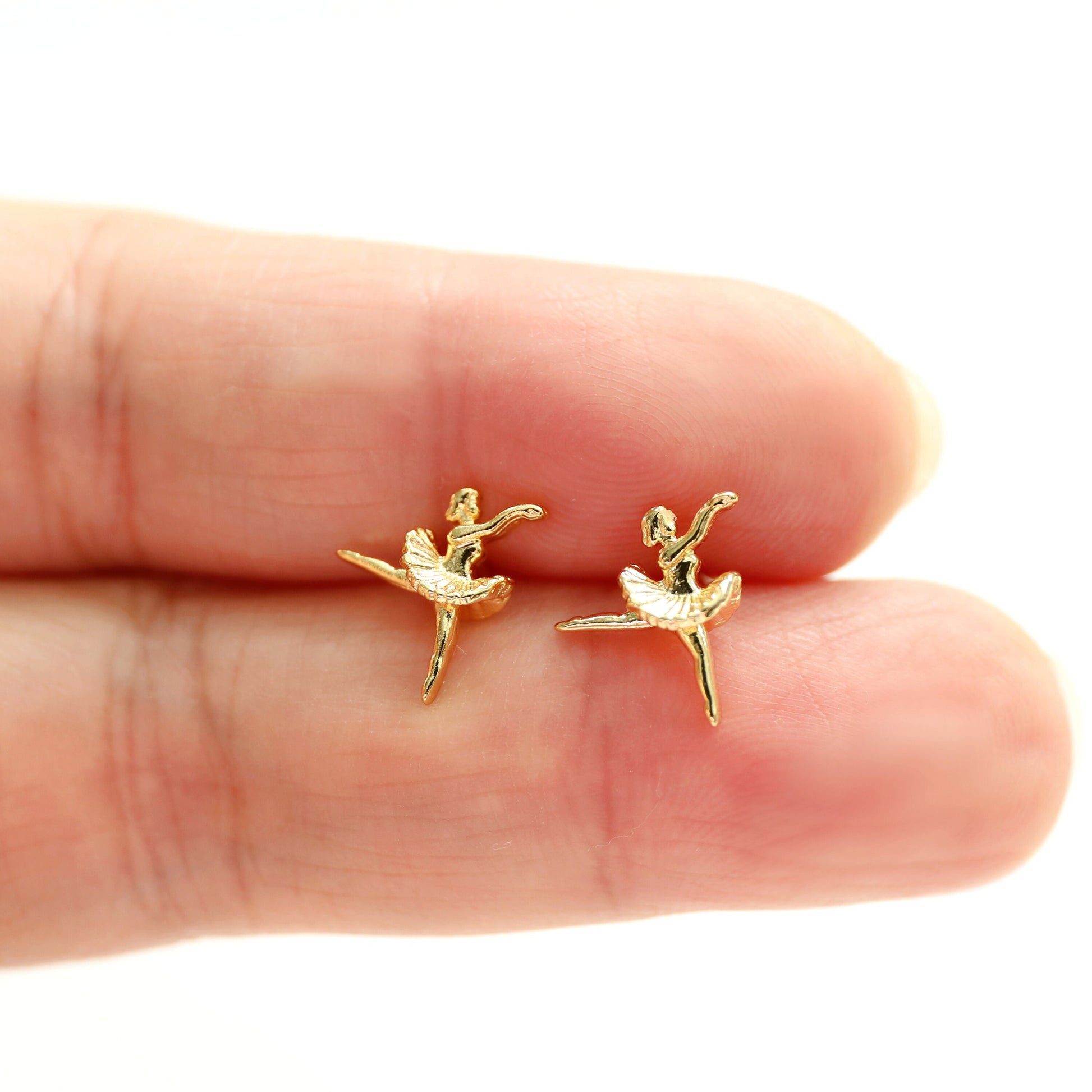 Beautiful and lovely tiny gold Ballerina stud earrings. The post material is 925 silver post and the Ballerina is gold-plated brass. Your earrings will ship in a gift box. ♥ Earring size approx. 1/2" x 3/8" ♥ Post Material 925 silver post ♥ Real 14K Gold Plated ♥ 1 Pair ♥ Delivery Time Fast shipping within 1 - 3 days