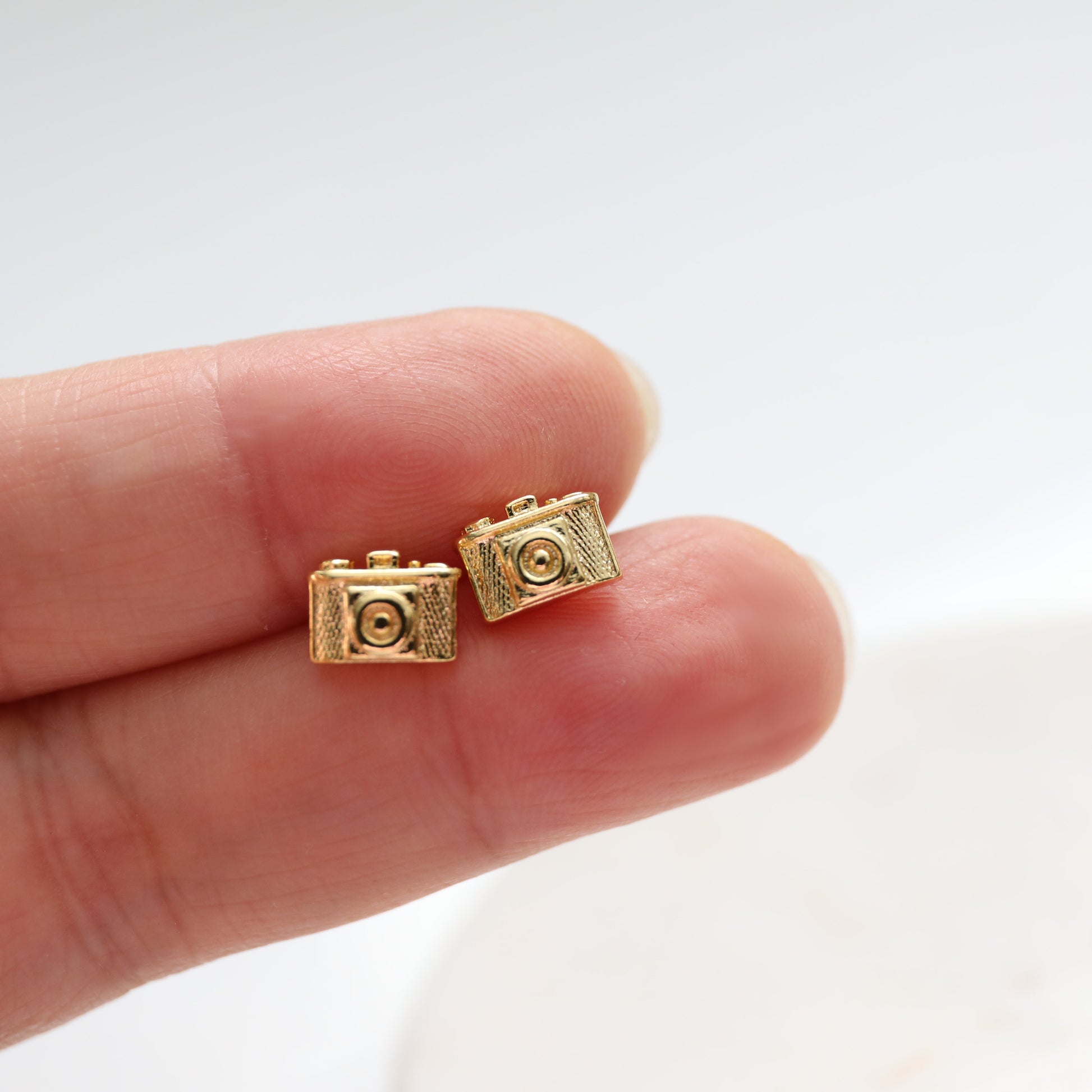 Super Tiny Gold Camera Earrings, Camera Earrings,Birthday Gift